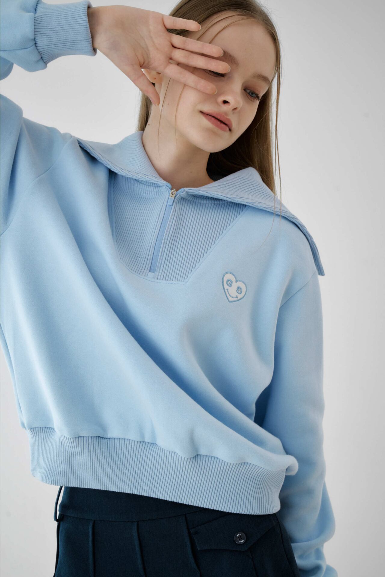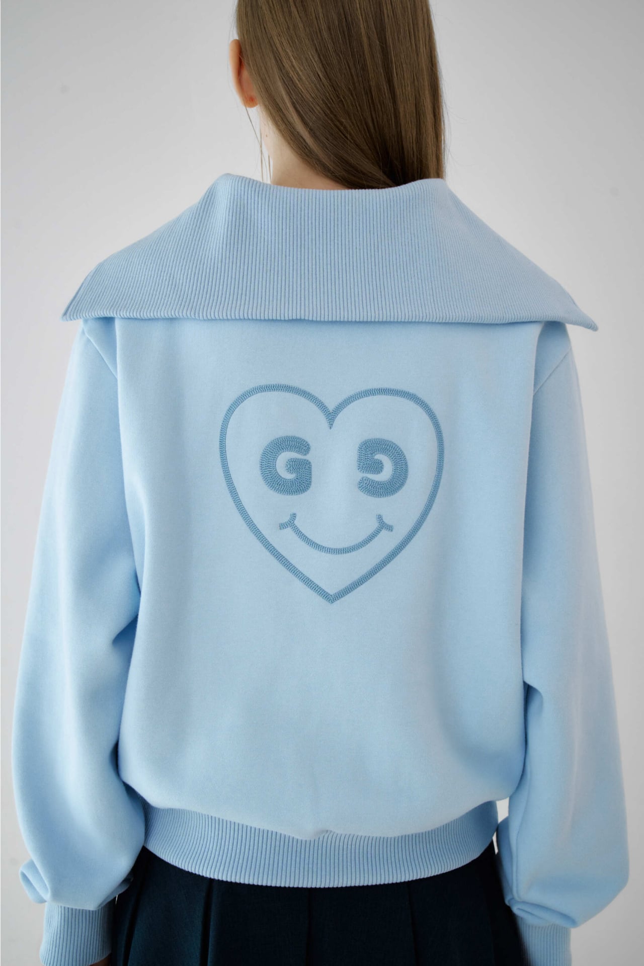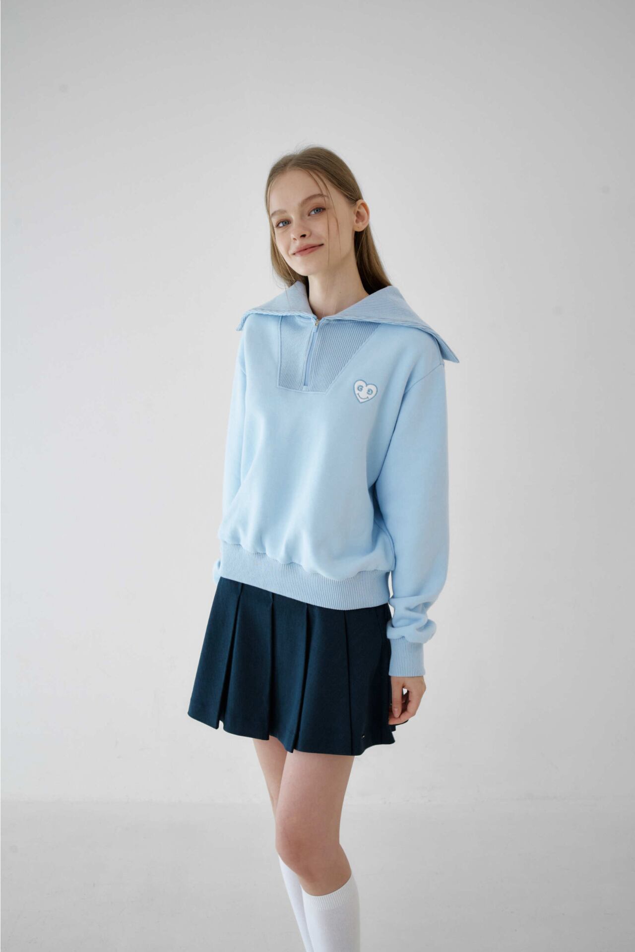 GOXO ゴーエックスオー スマイルハートセーラーカラー起毛マンツーマン ブルー