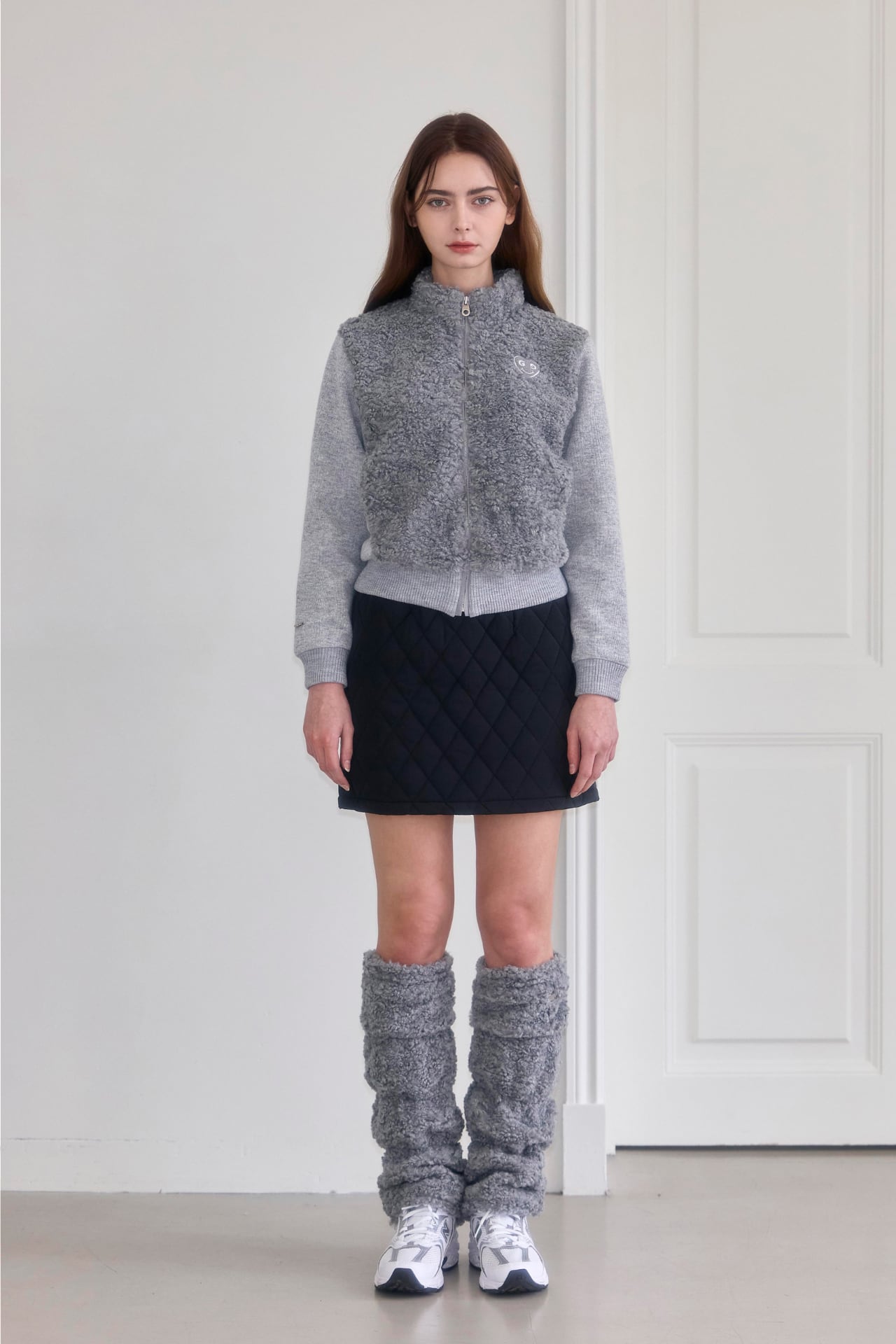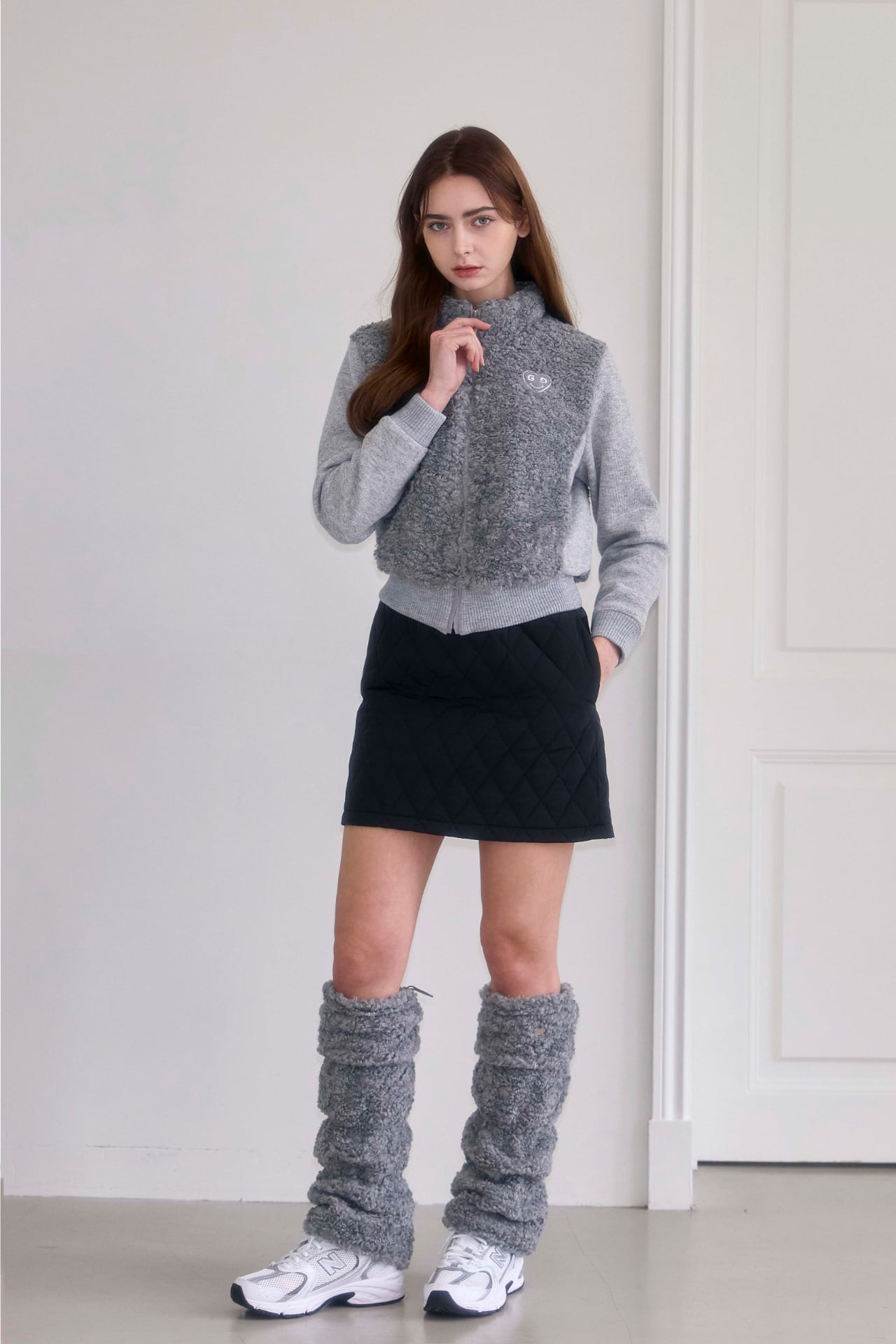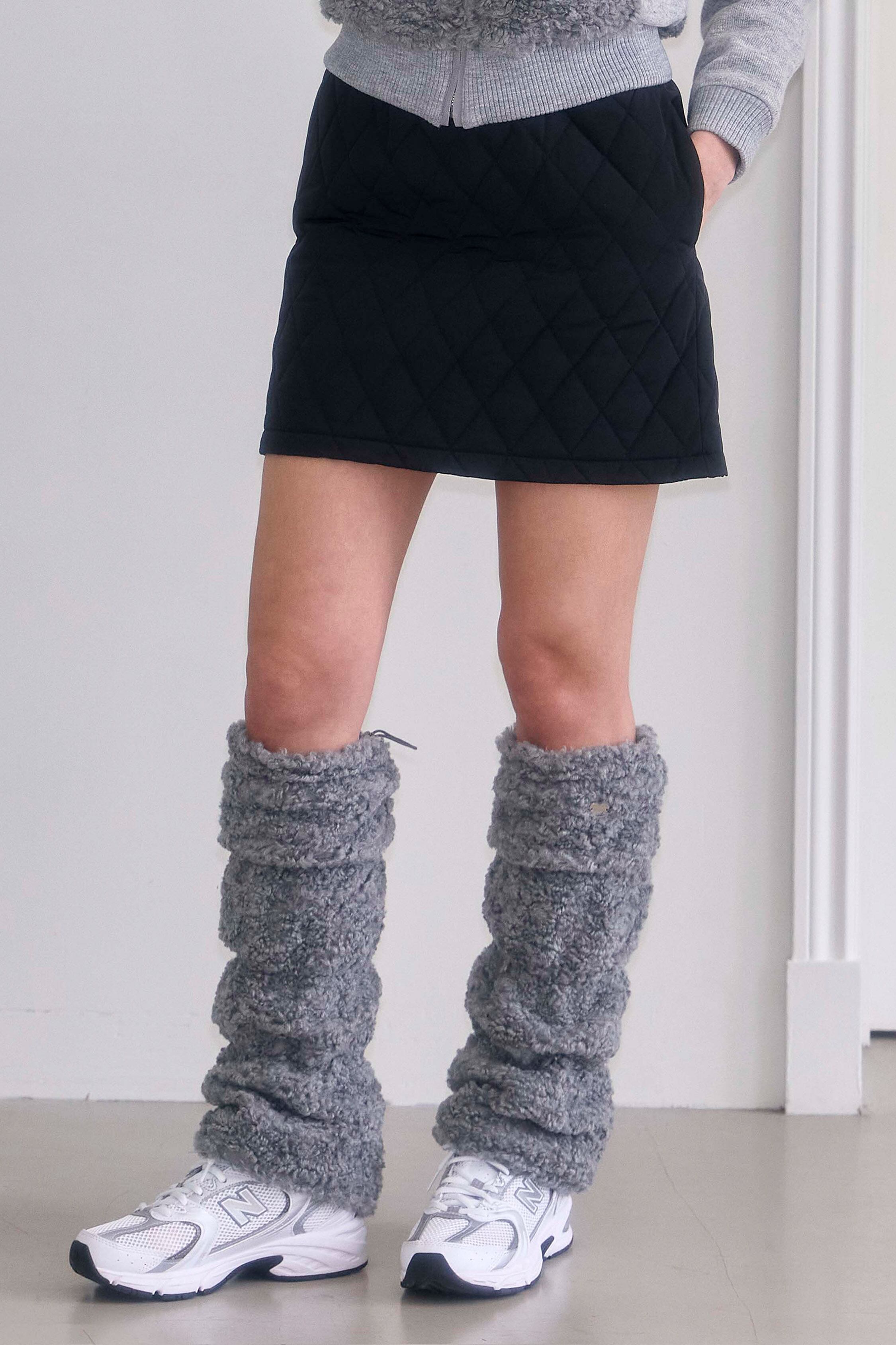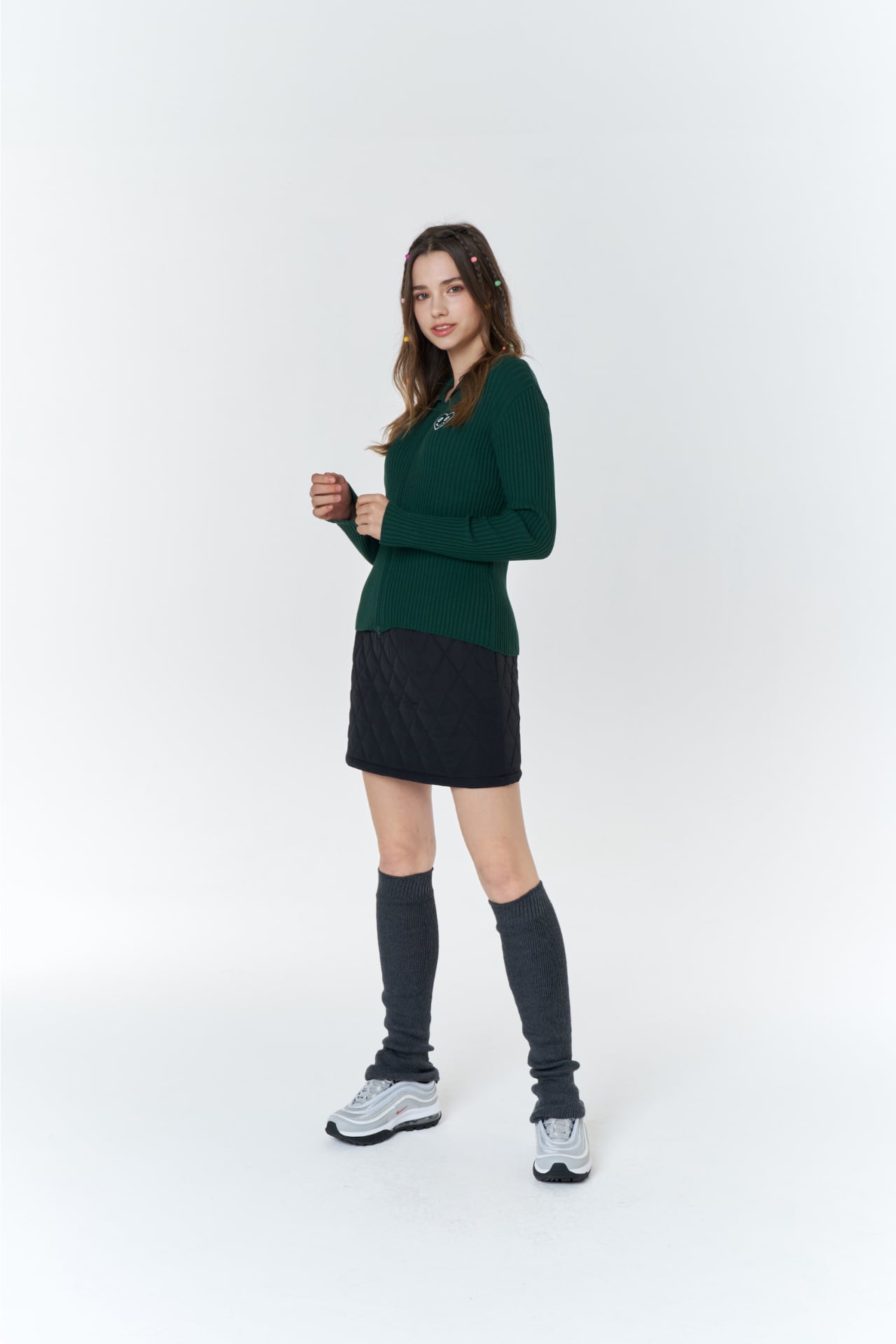 高級なダイヤモンドパターンのヌビムディテールと洗練されたカラーで流行なくコーディネート可能なキルティングミニスカートです。
