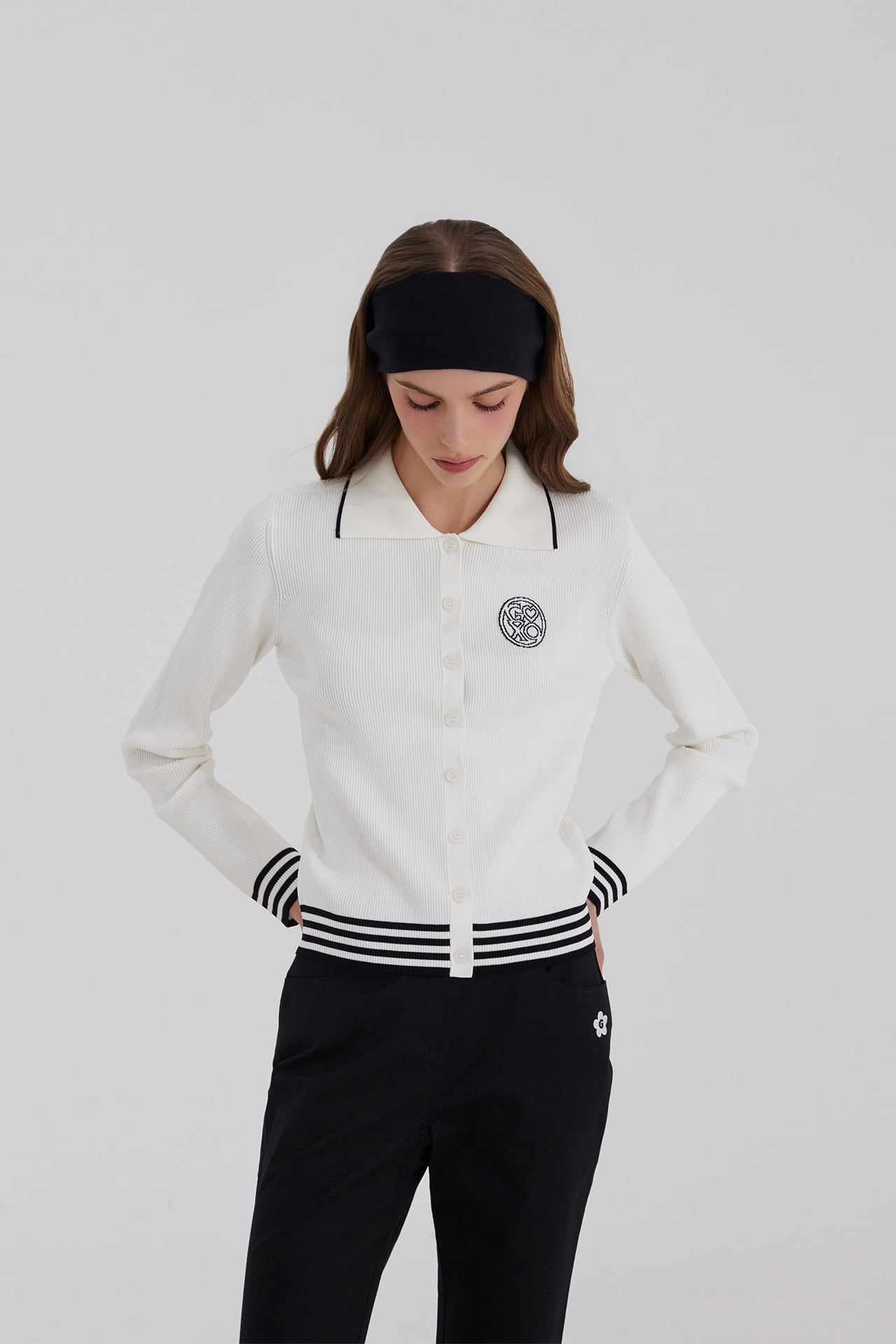 -胸のロゴ刺繍ディテールでクラシックなポイント
