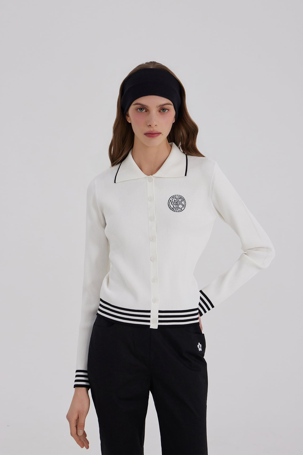 GOXO ゴーエックスオー クラシックロゴ ニット カーディガン ホワイト