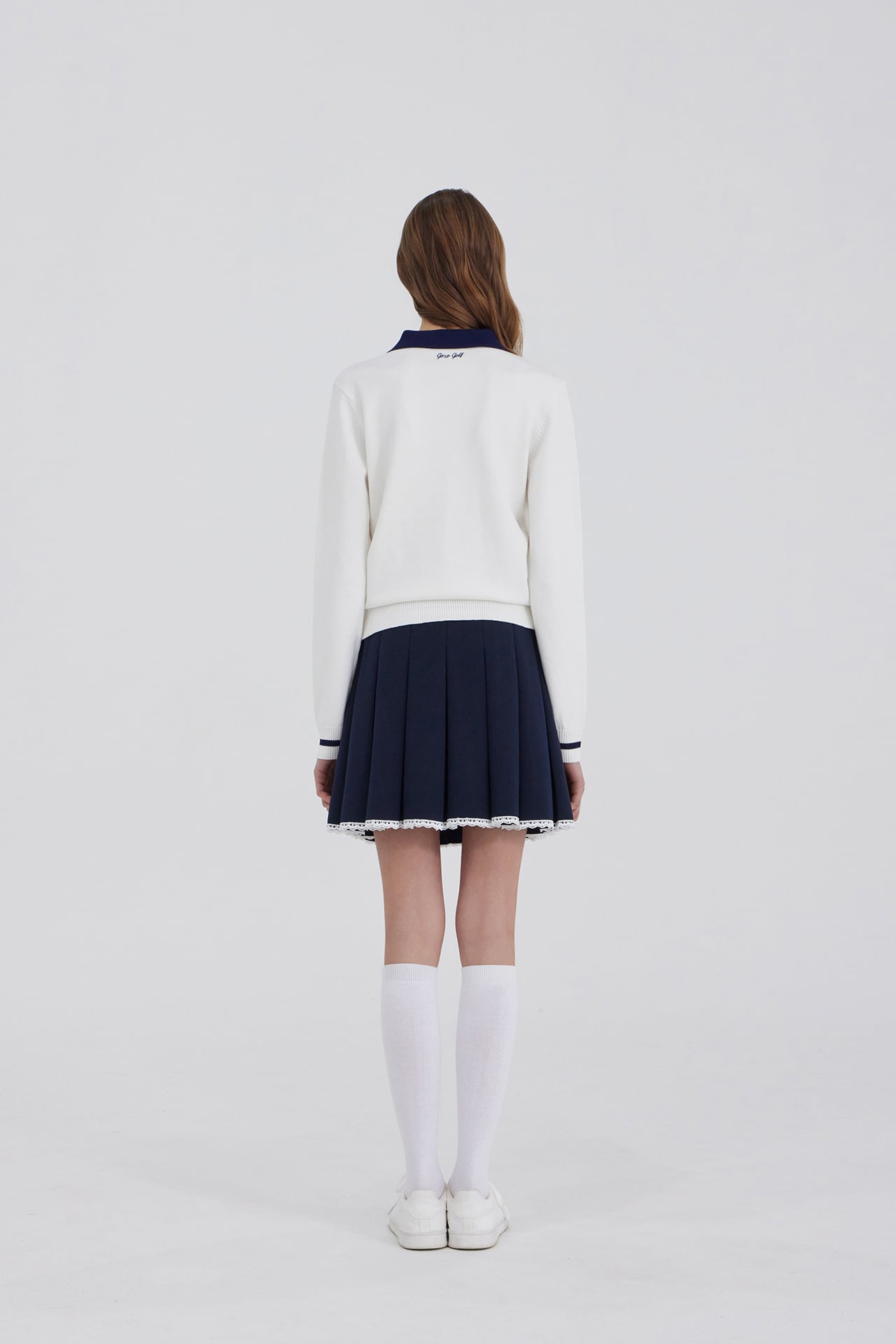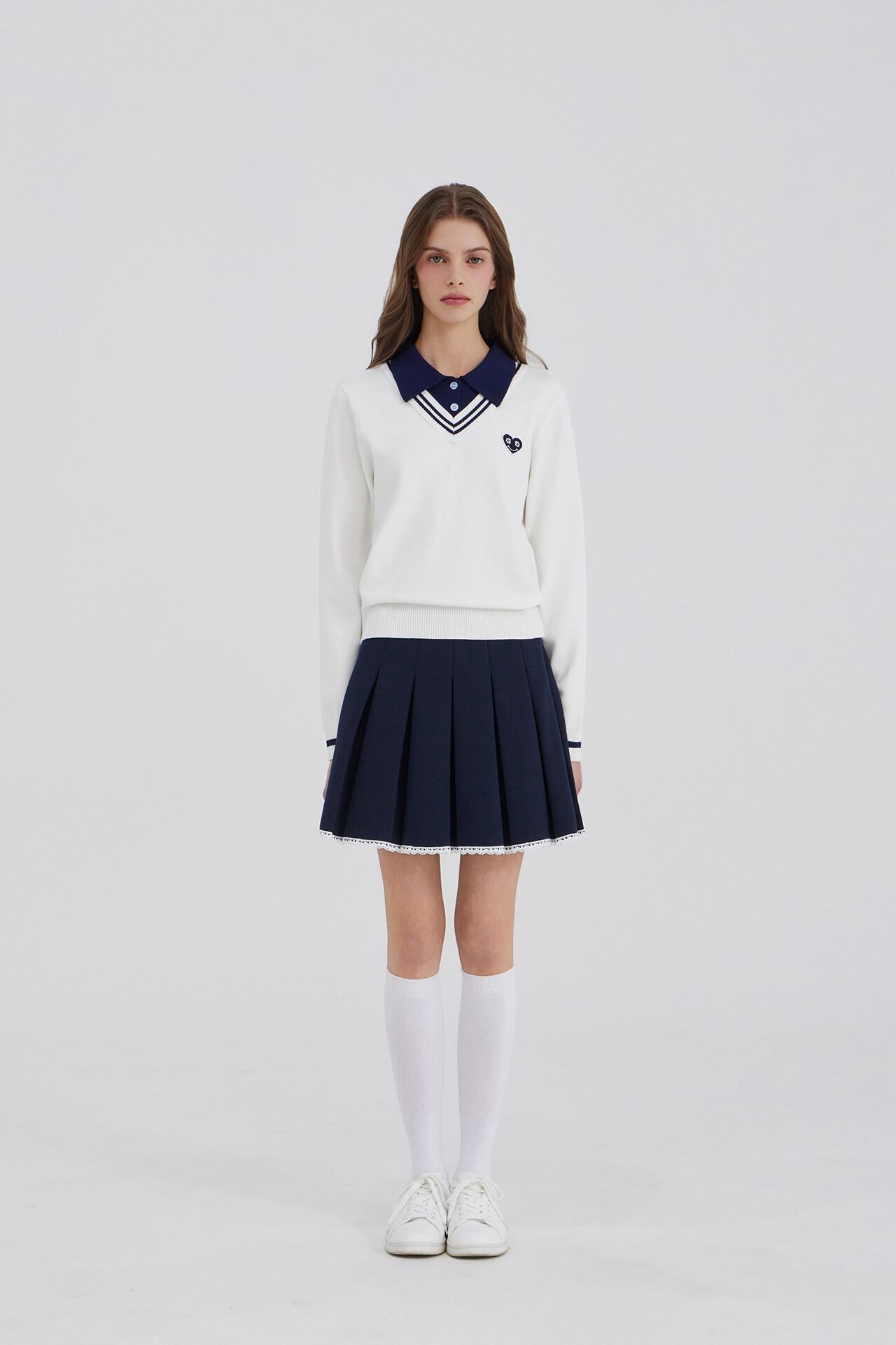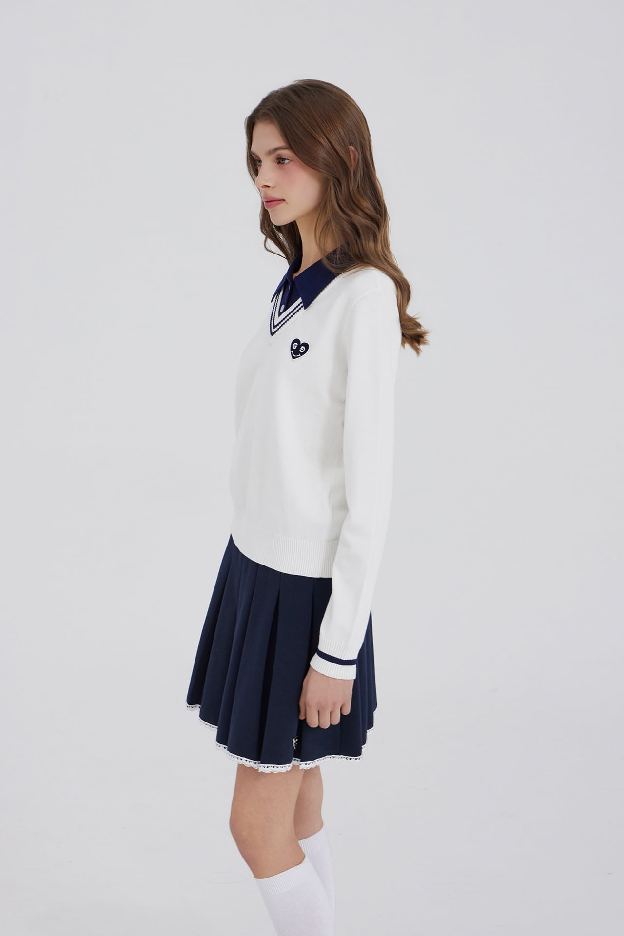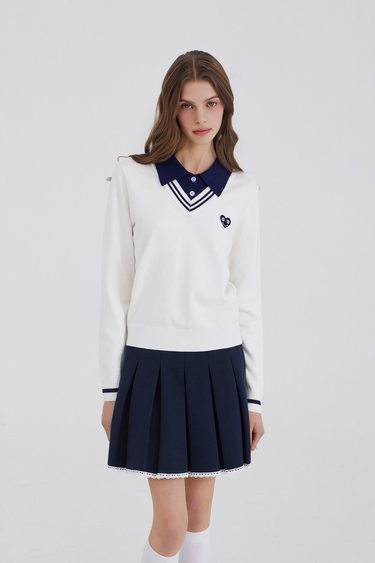 GOXO ゴーエックスオー スマイルハート Vネック 配色 ニット ホワイト