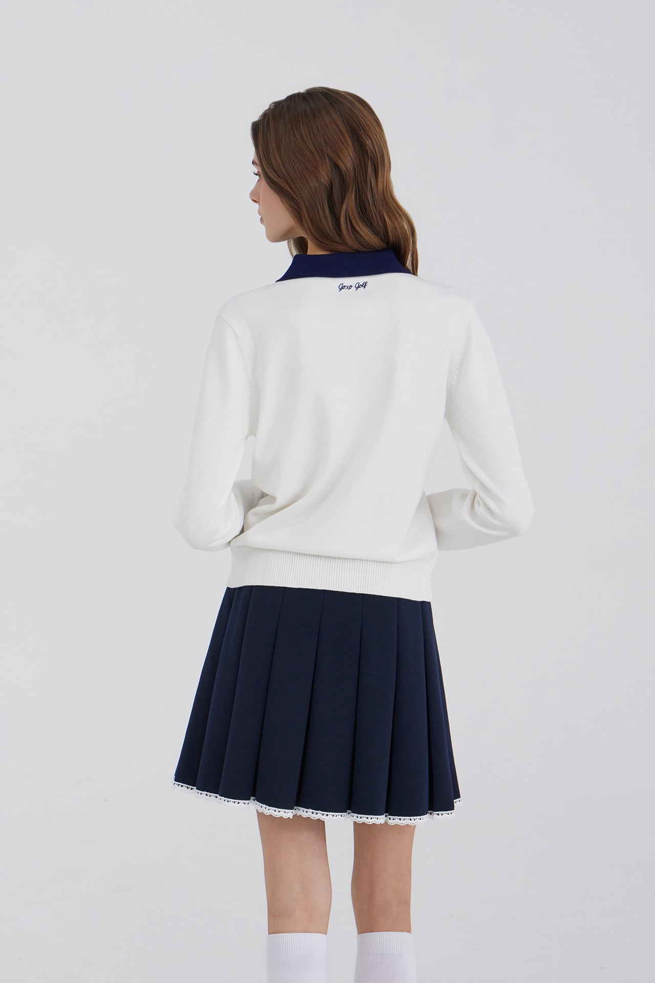 柔らかなニットのタッチ感により、インナーがなくても快適に着用でき、ラウンドはもちろん日常のスタイルにも自然に調和します。