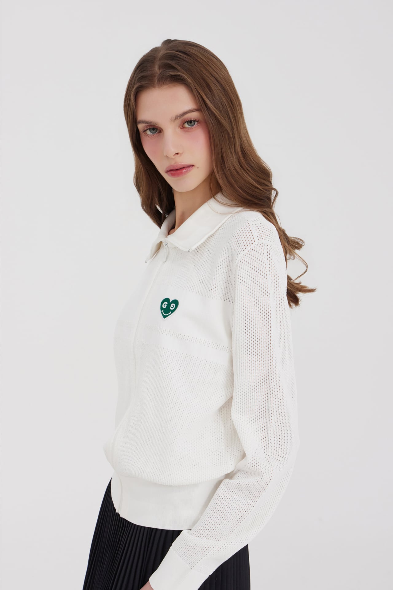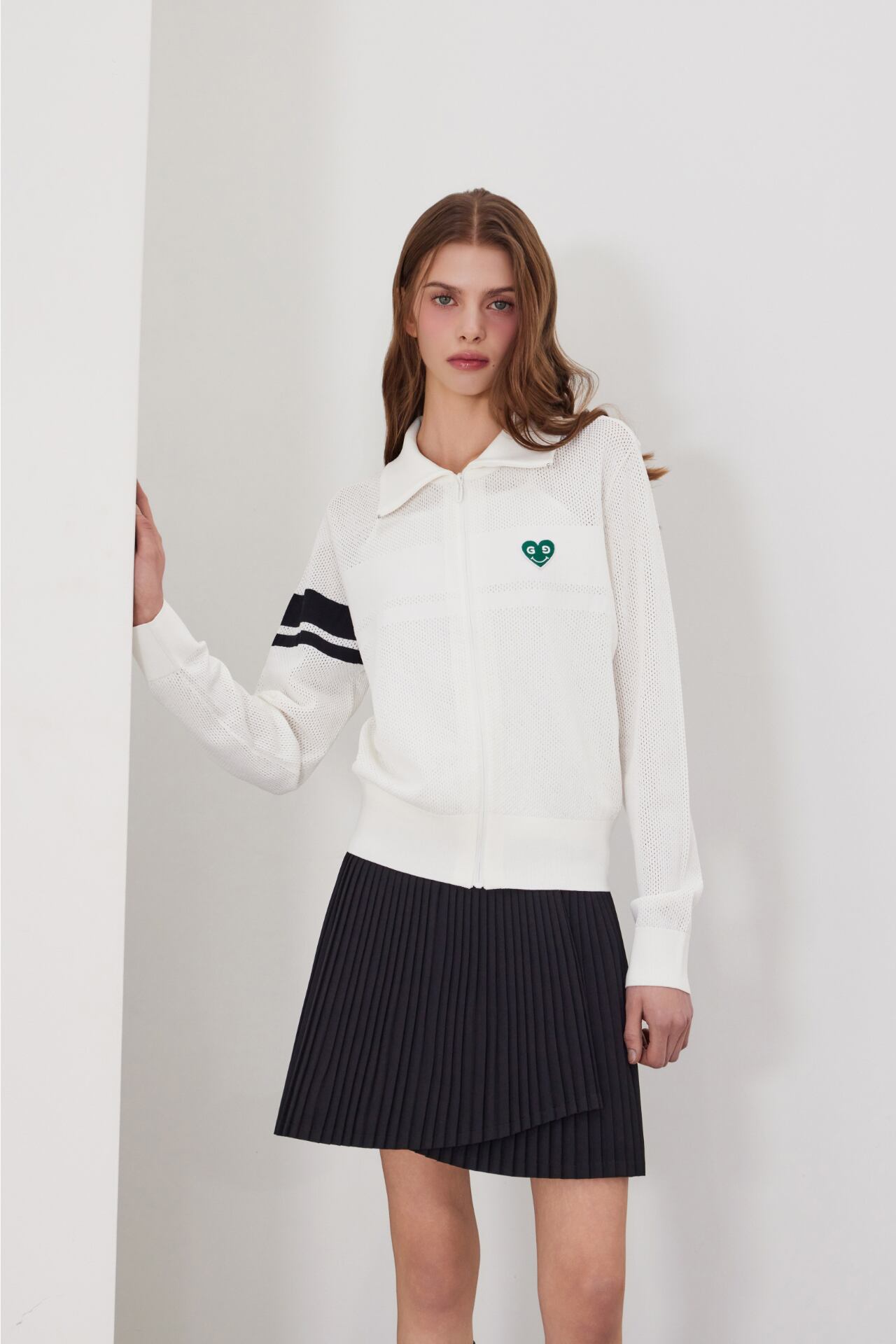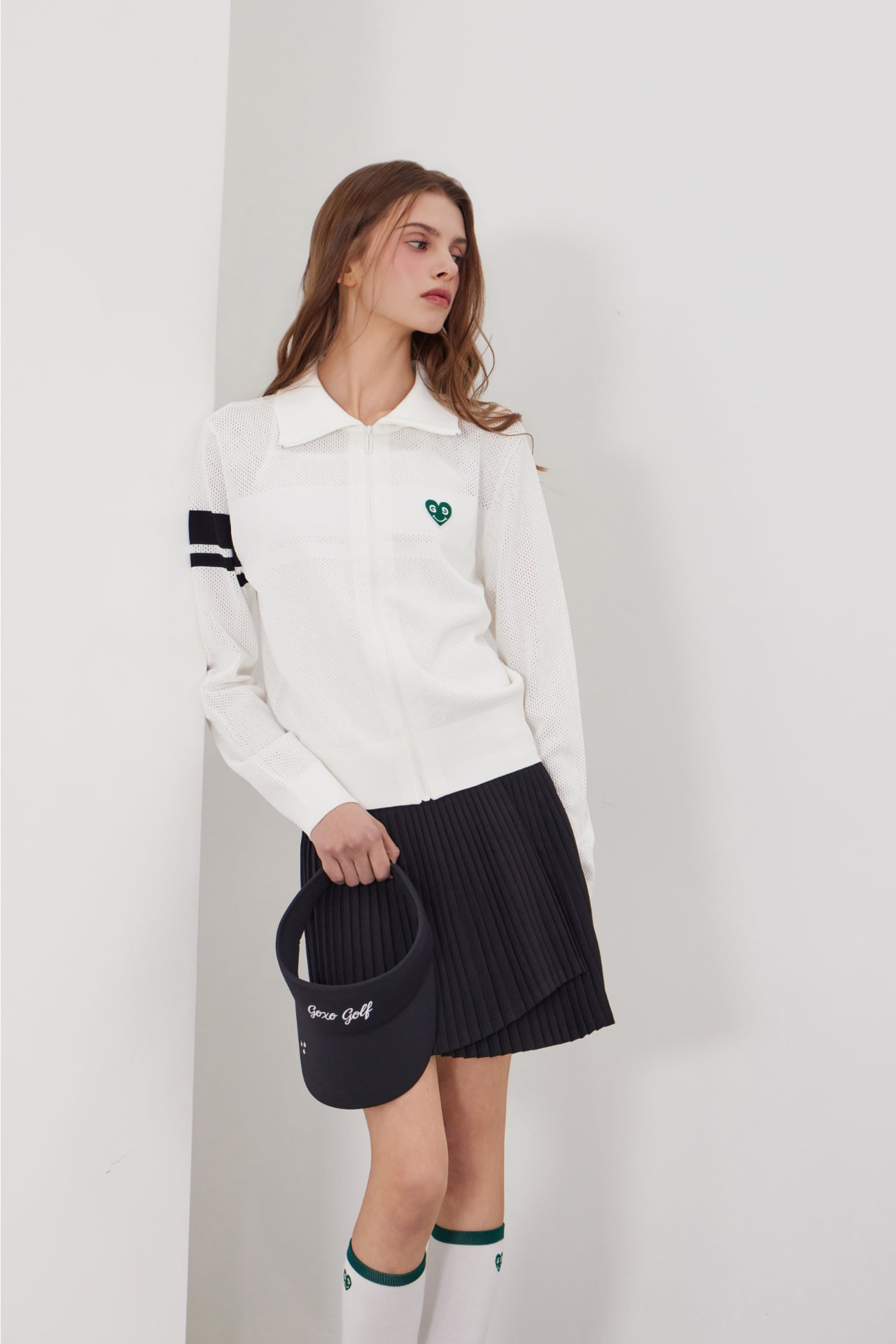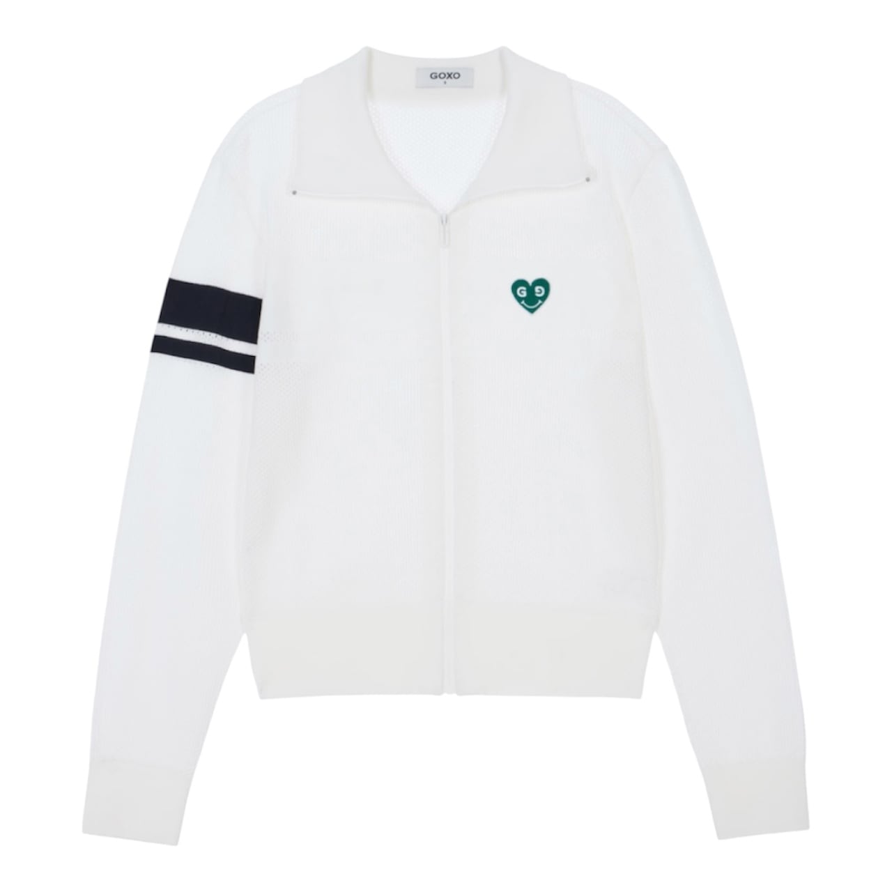 GOXO ゴーエックスオー スマイルハート エアリー ニットジップアップ ホワイト