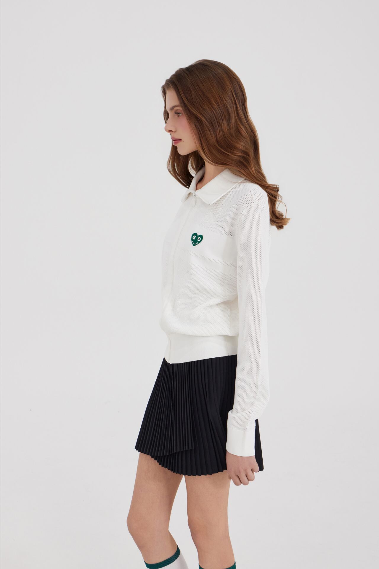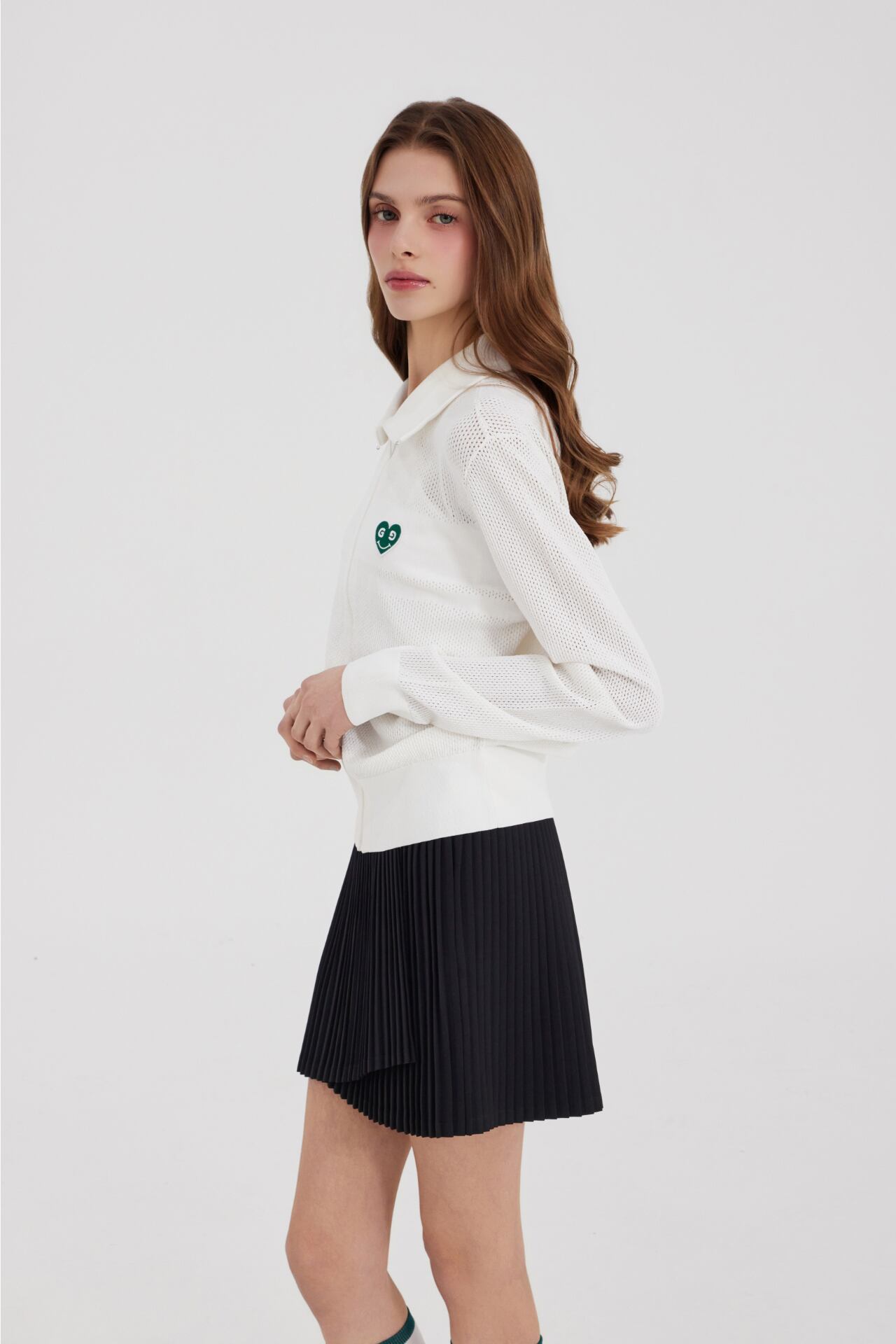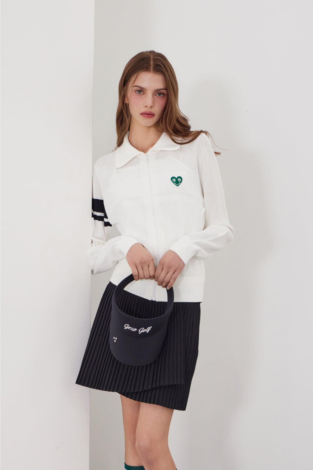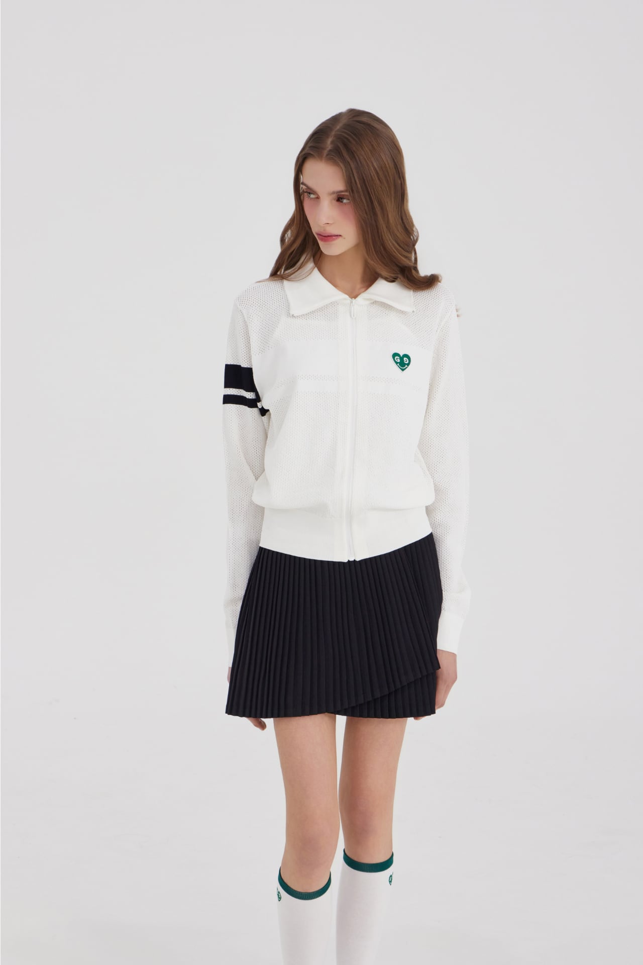 GOXO ゴーエックスオー スマイルハート エアリー ニットジップアップ ホワイト