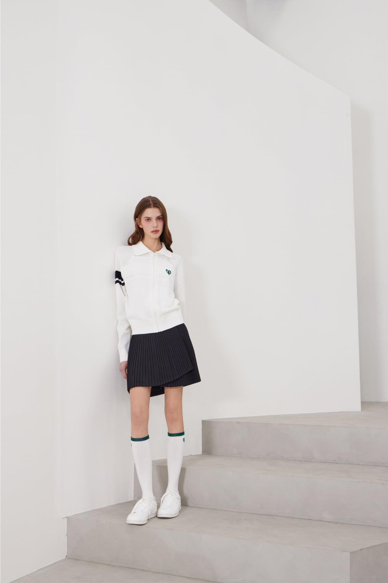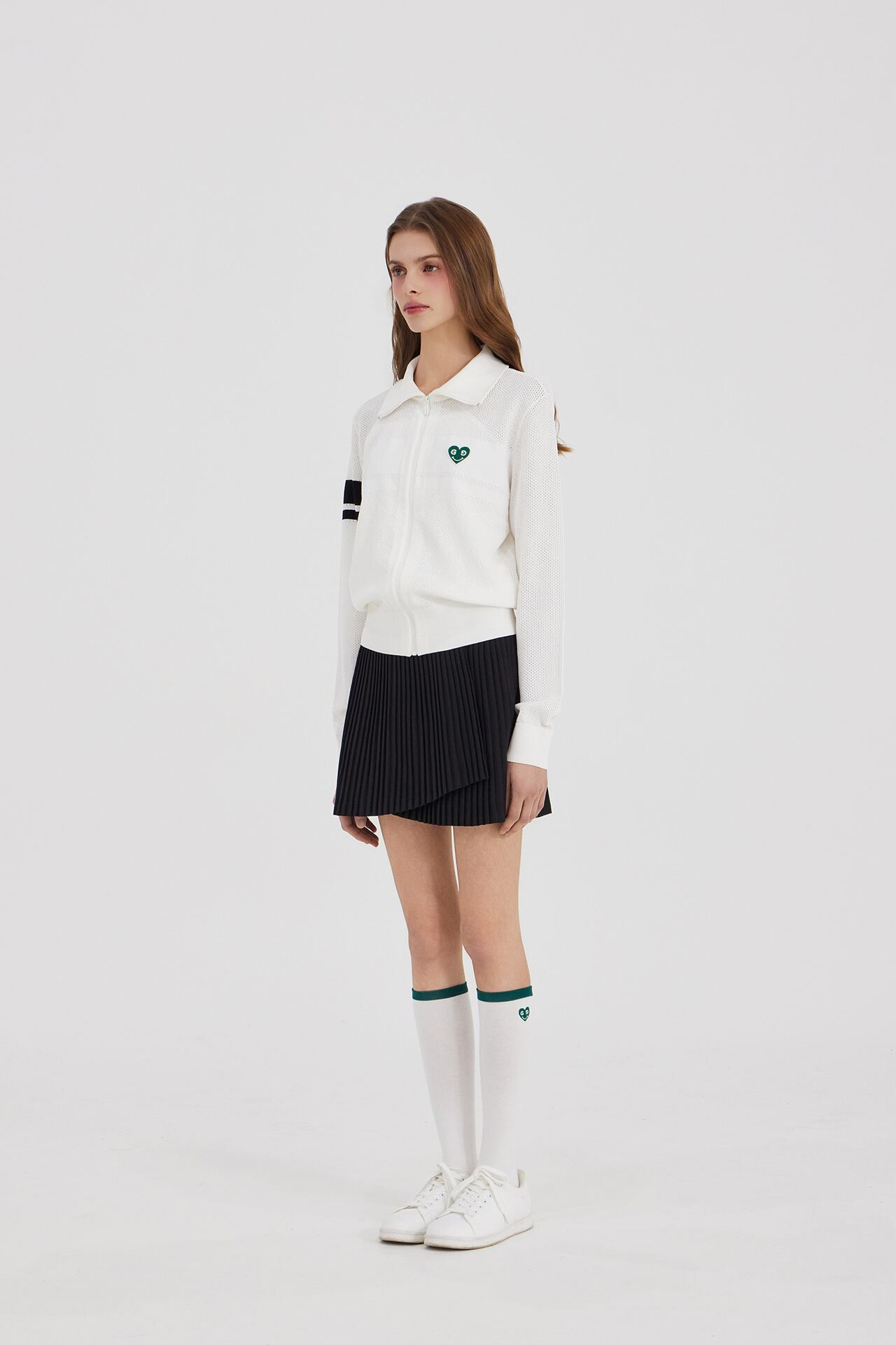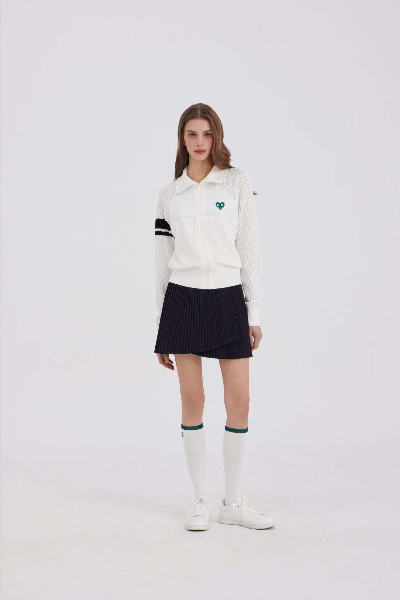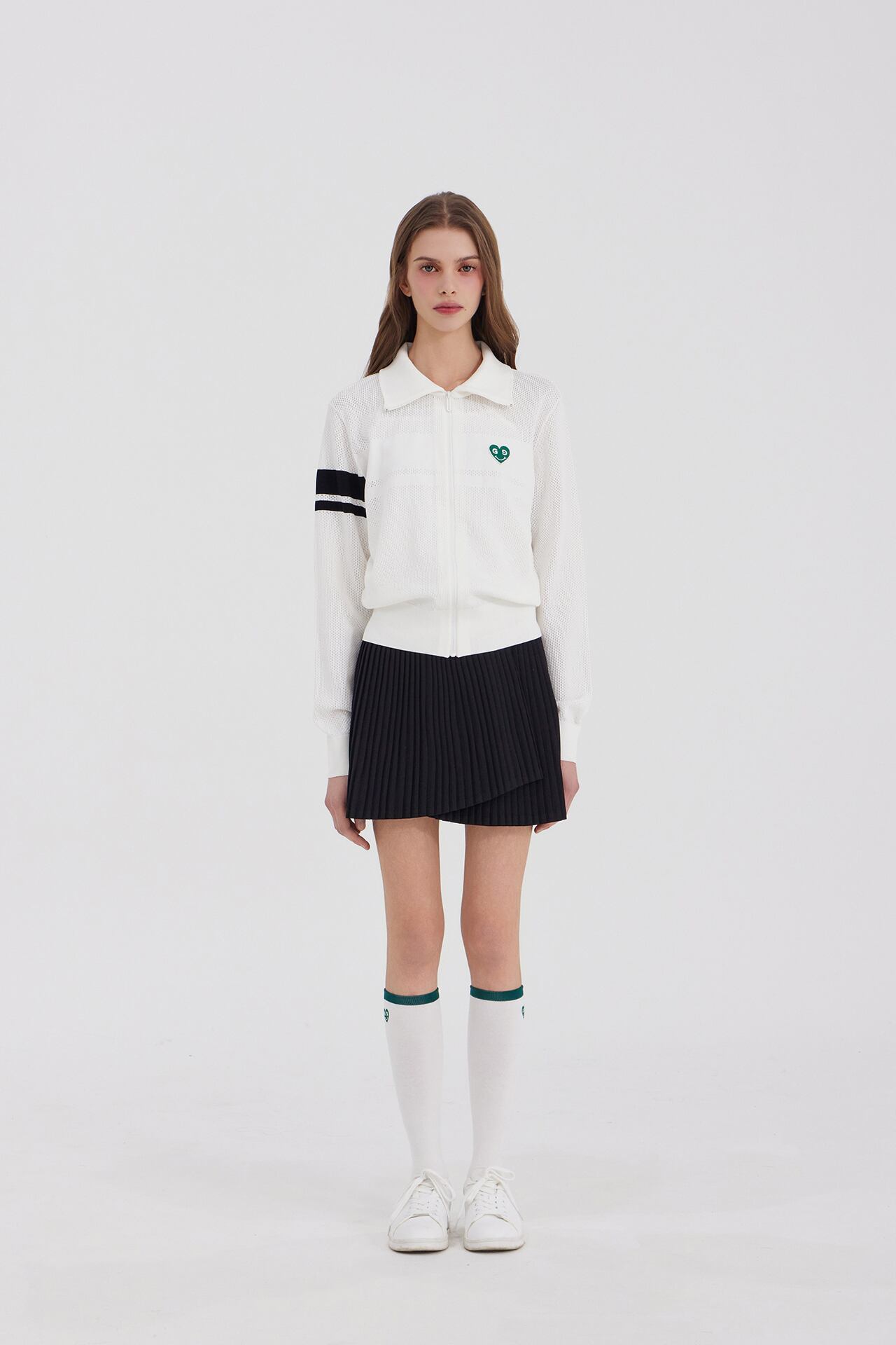 GOXO ゴーエックスオー スマイルハート エアリー ニットジップアップ ホワイト