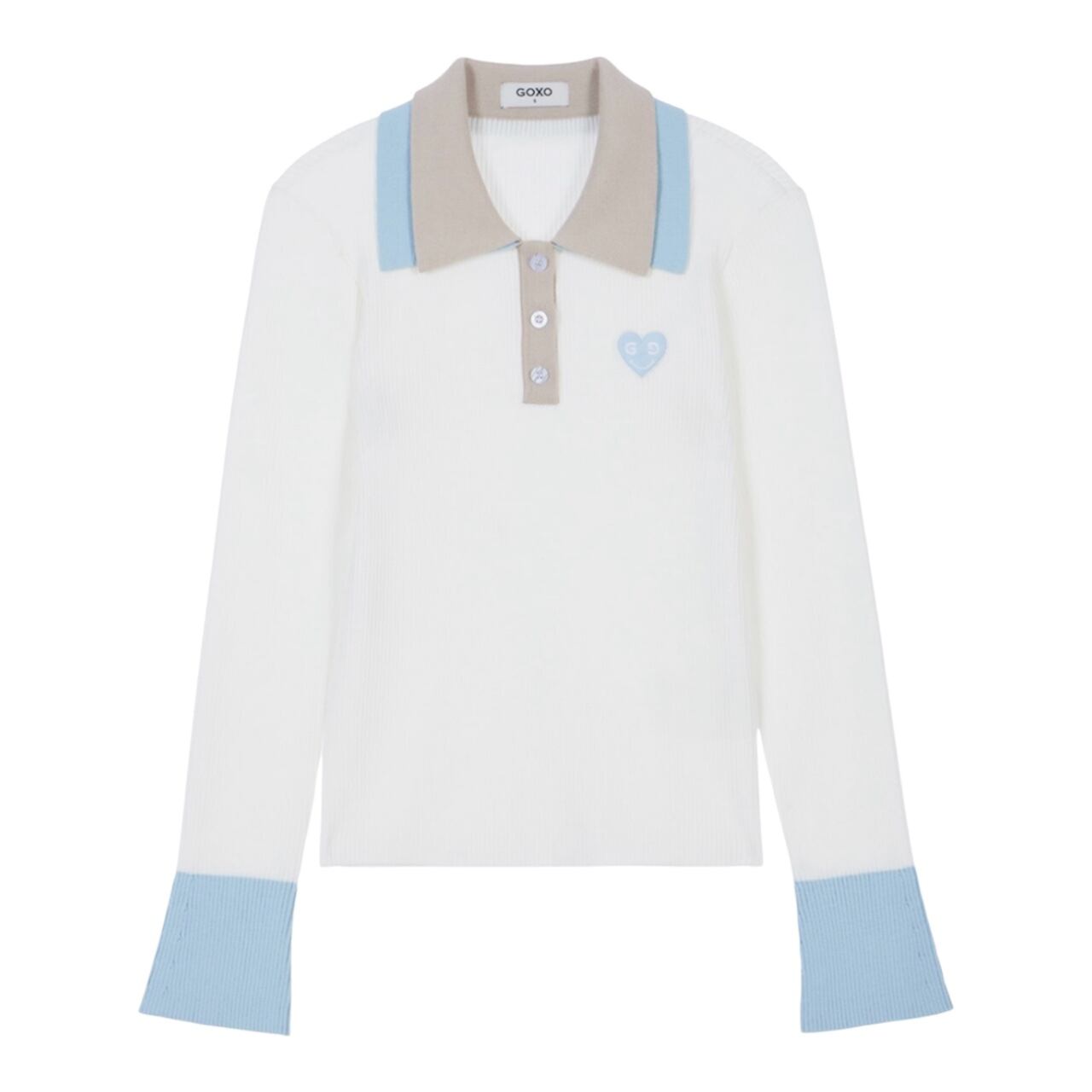 GOXO ゴーエックスオー スマイルハート ダブルカラー ニット ホワイト