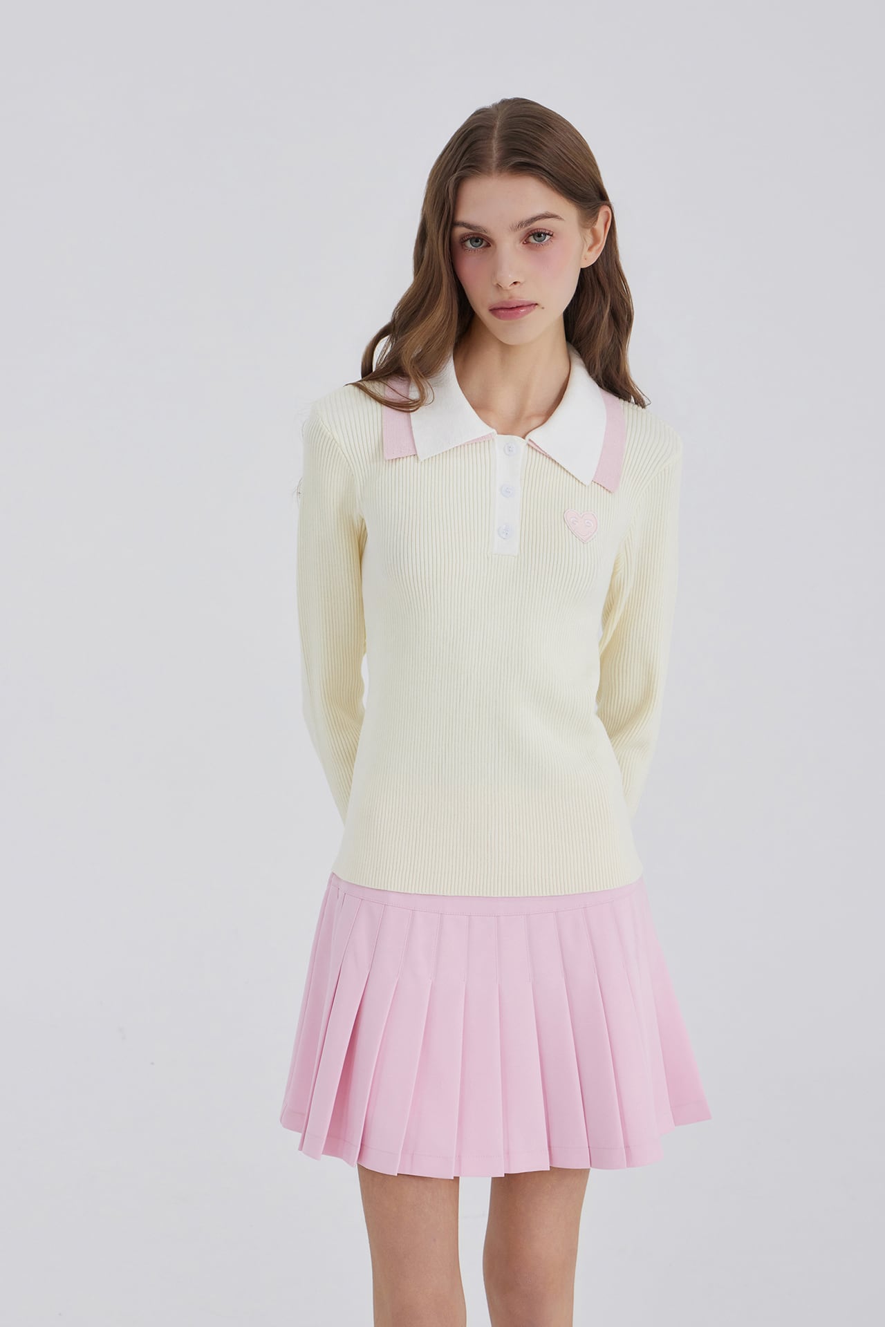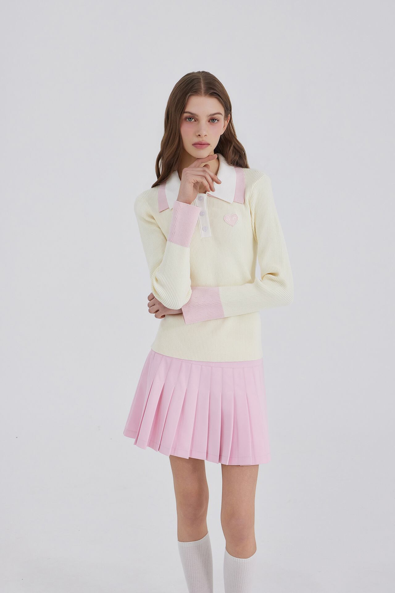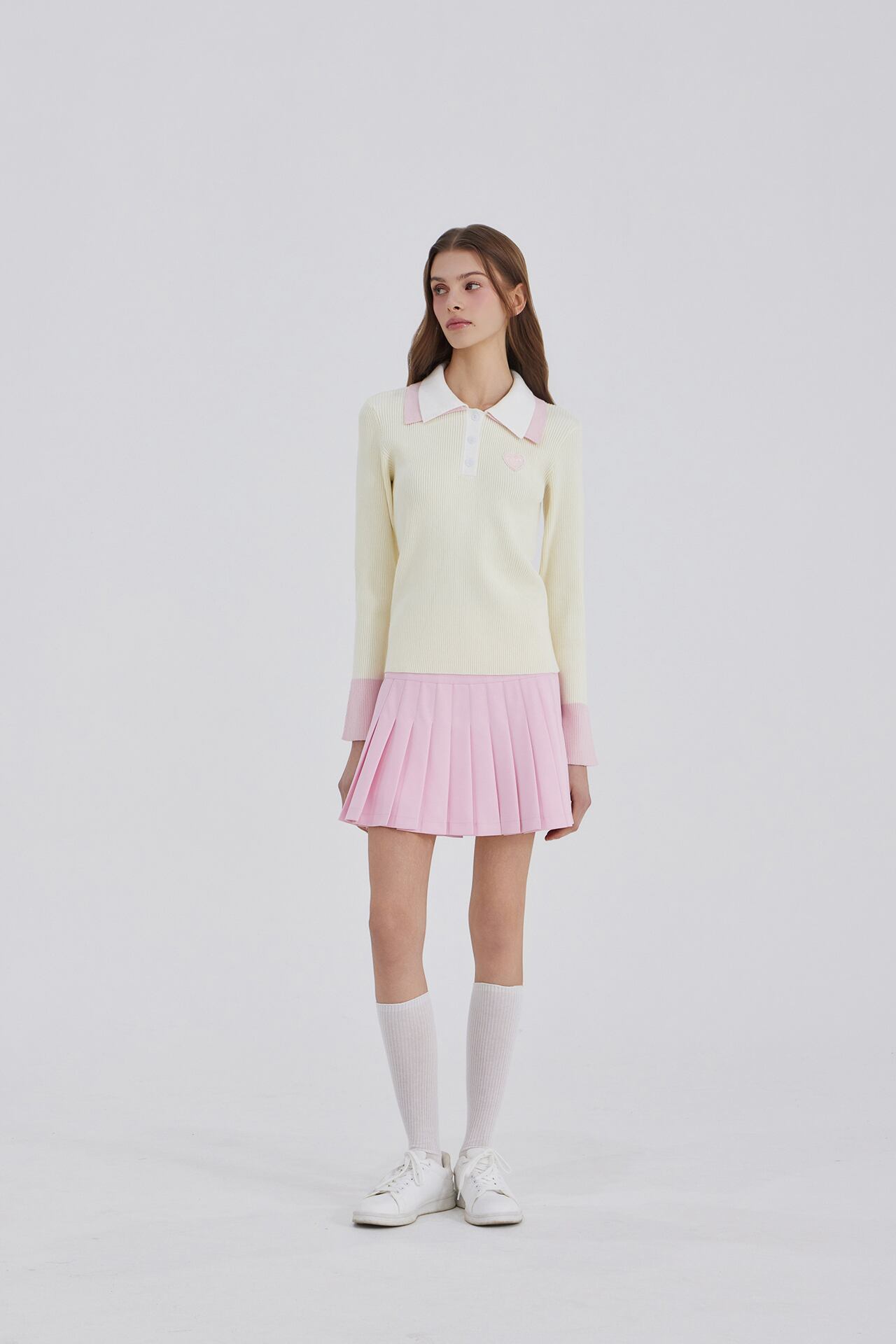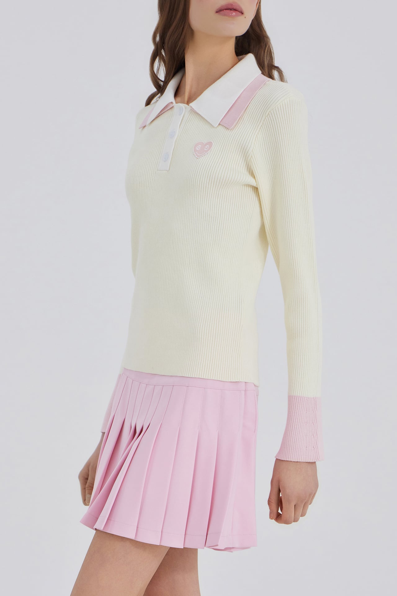 洗練されたポロカラーのデザインに配色を加えたニットトップです。