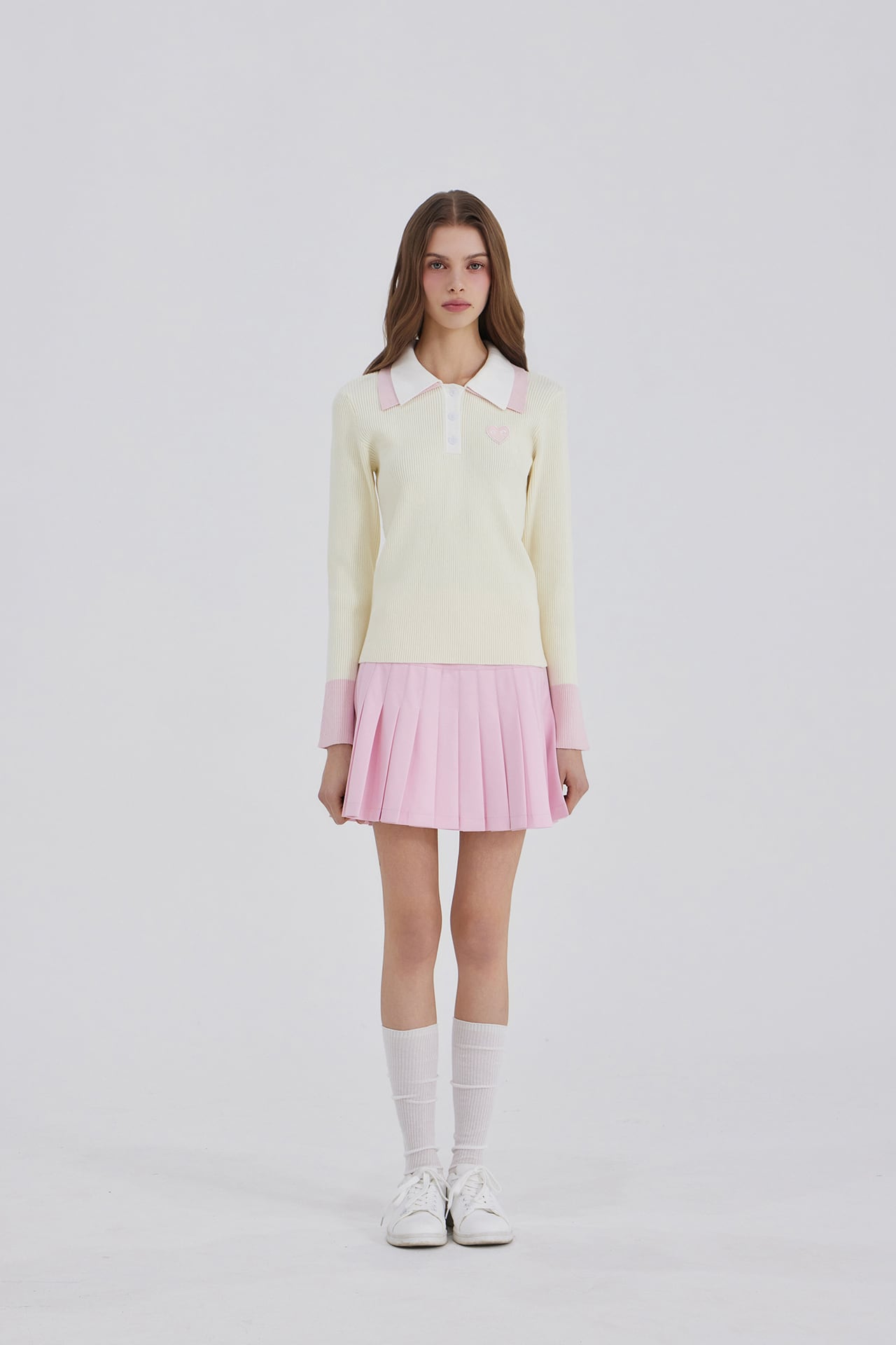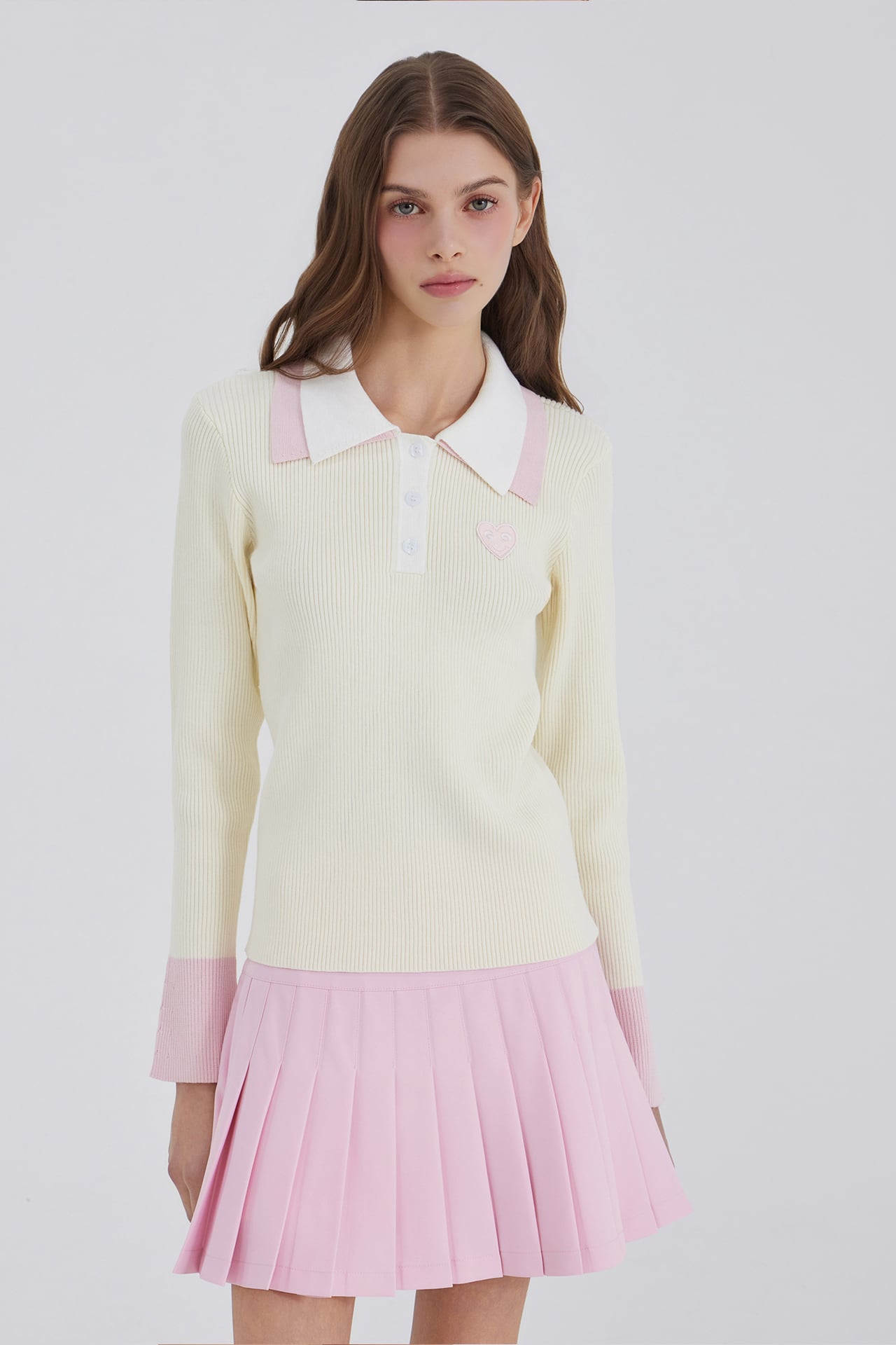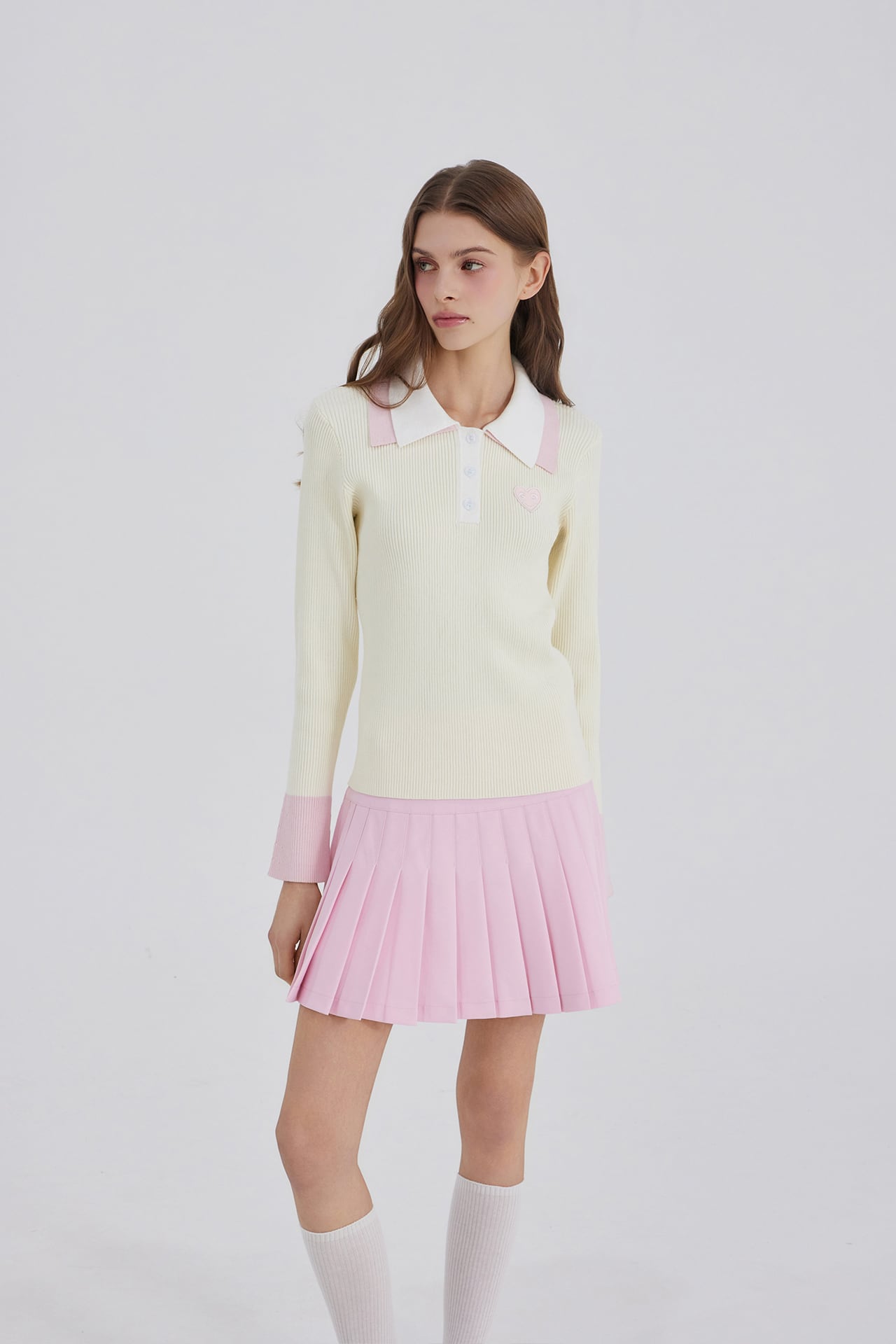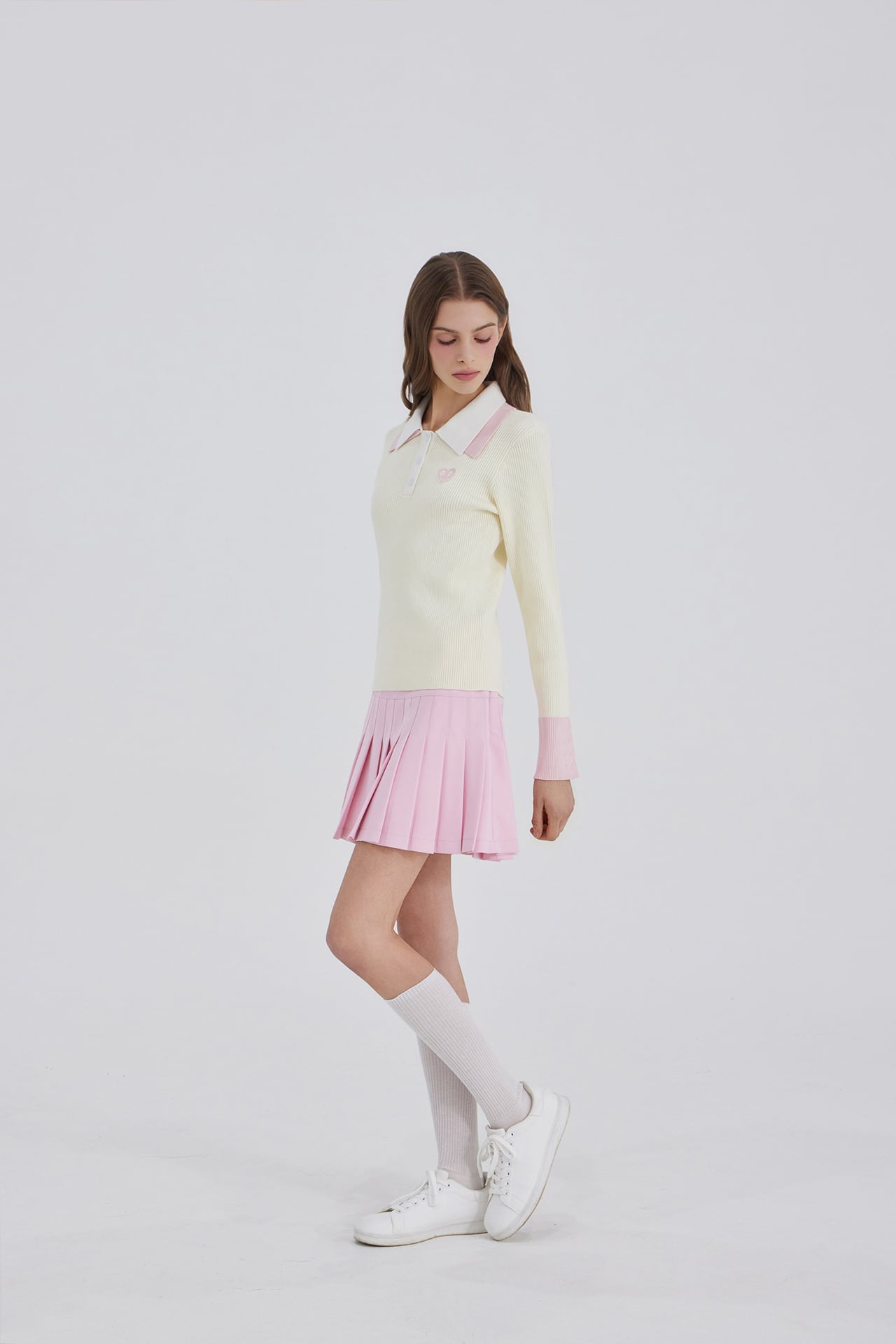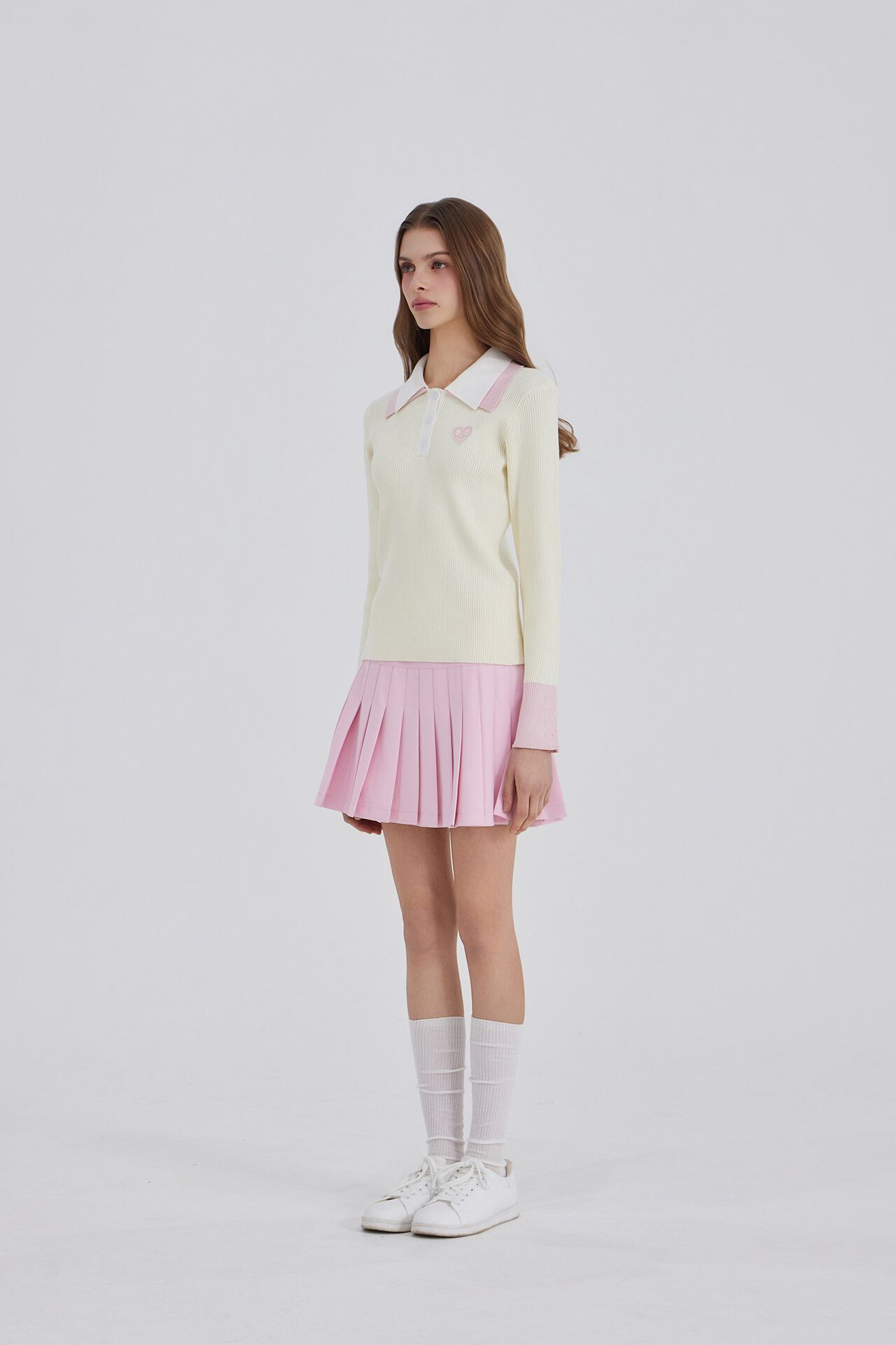洗練されたポロカラーのデザインに配色を加えたニットトップです。