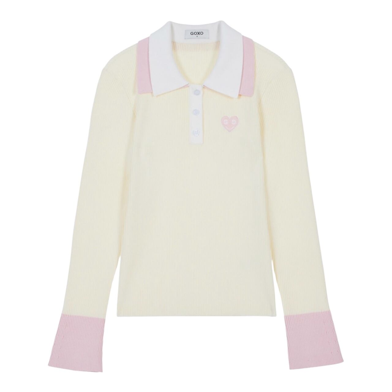 GOXO ゴーエックスオー スマイルハート ダブルカラー ニット アイボリー