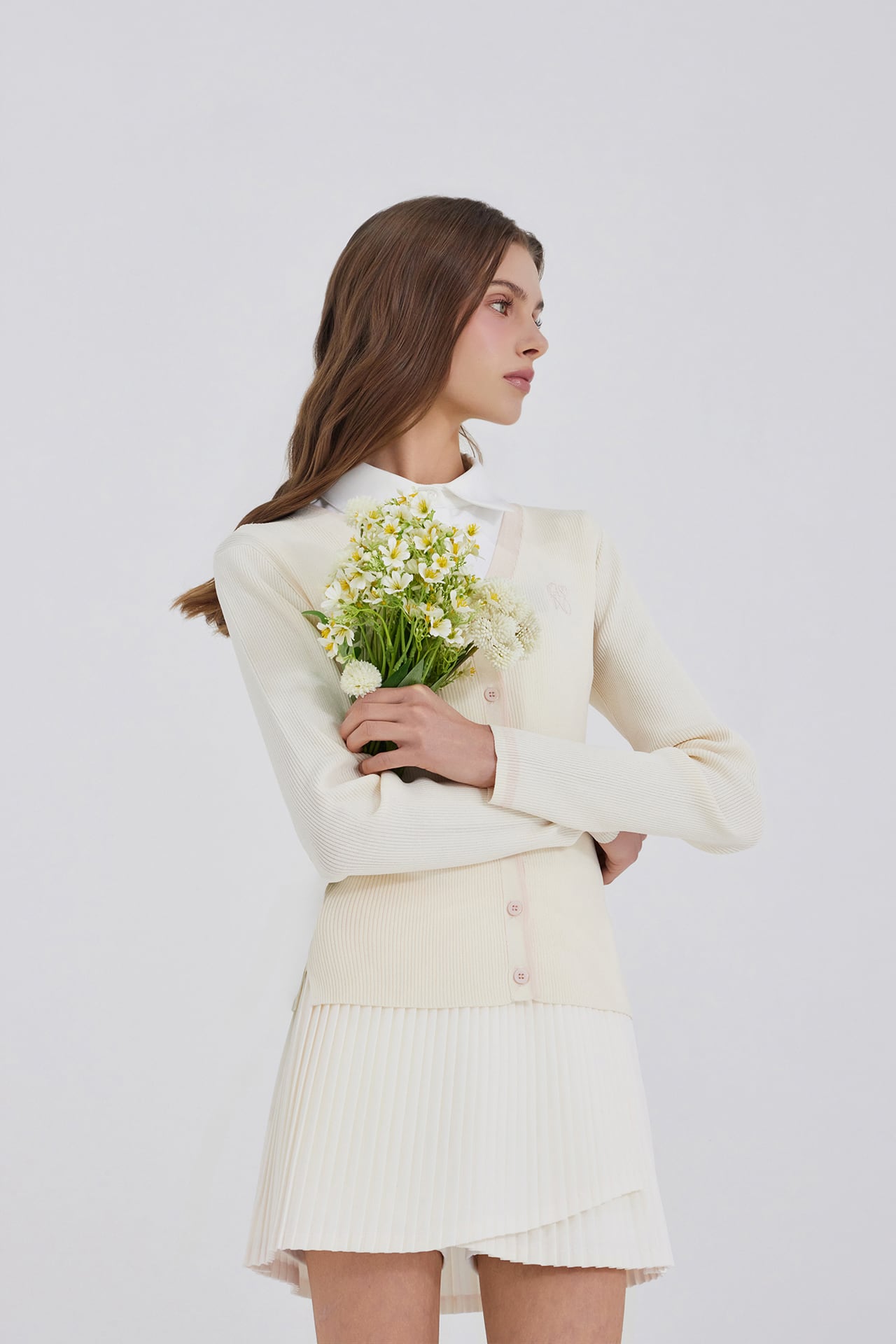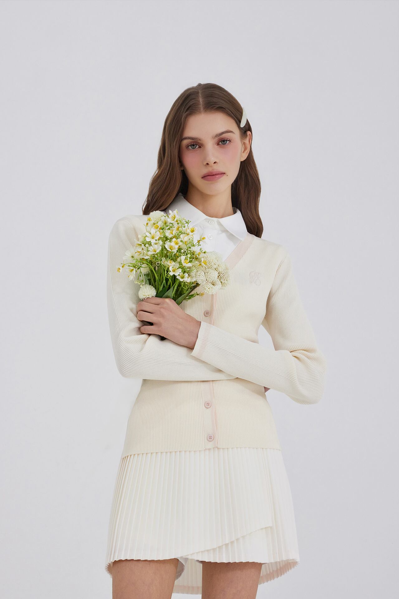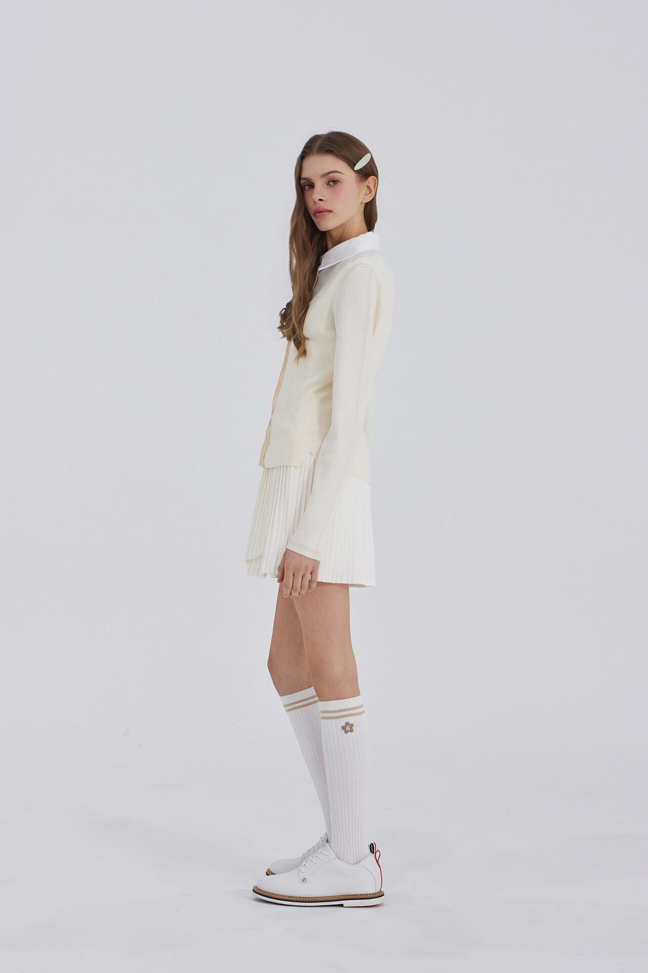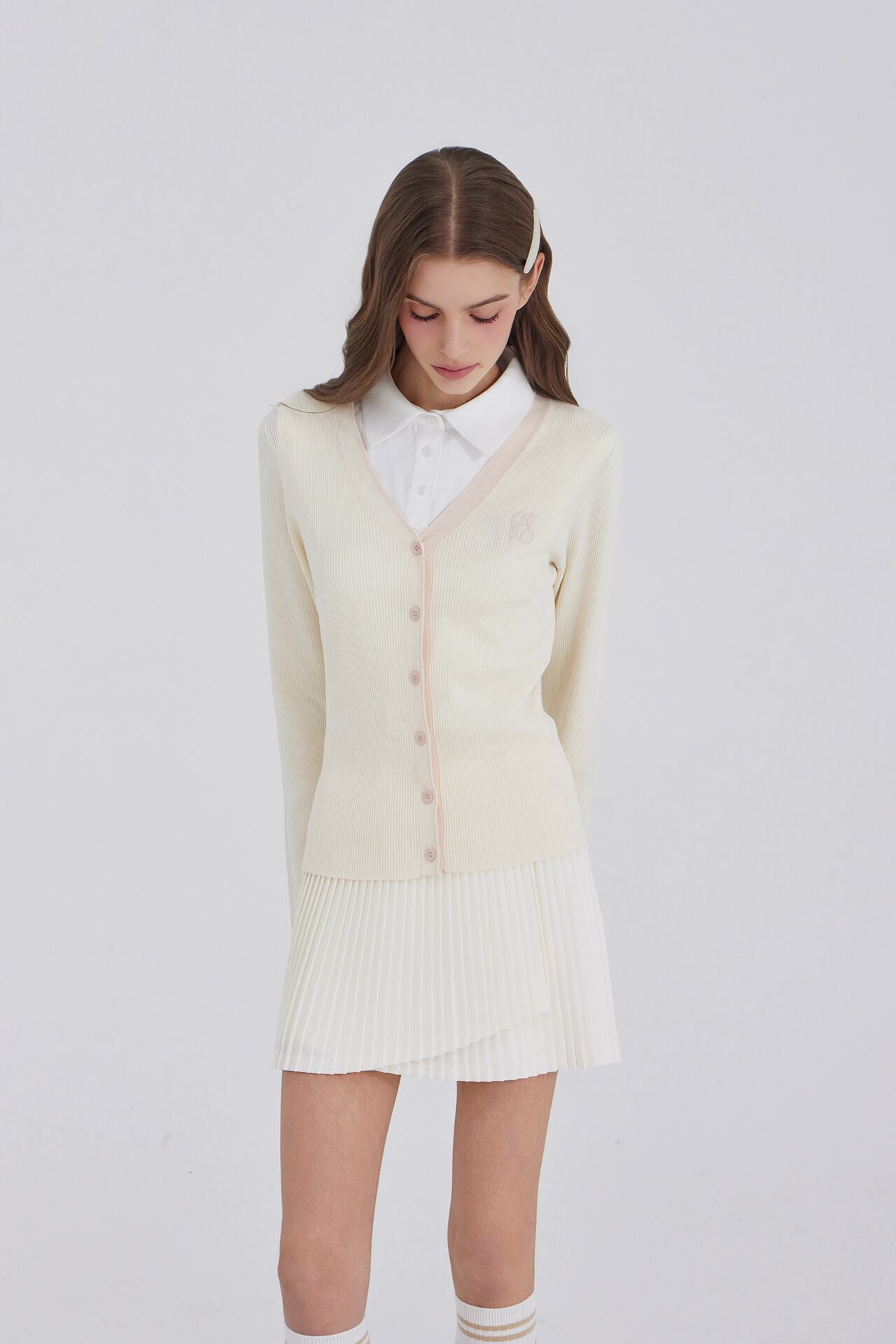 Vネックラインが際立つニットカーディガンで、ゴルフウェア特有の整ったムードをやさしく表現したアイテムです。