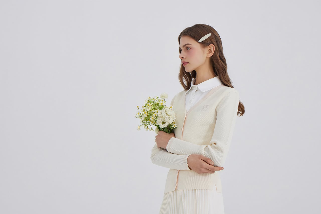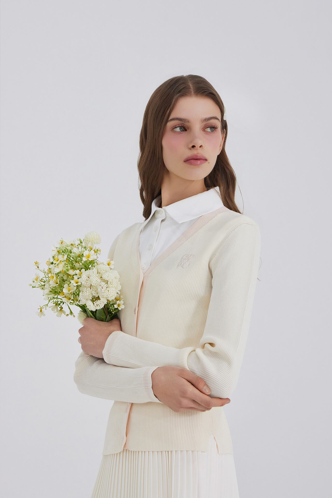 過度でないVネックの奥行きとボタンディテールが調和し、インナーとレイヤーしても自然に演出されます。