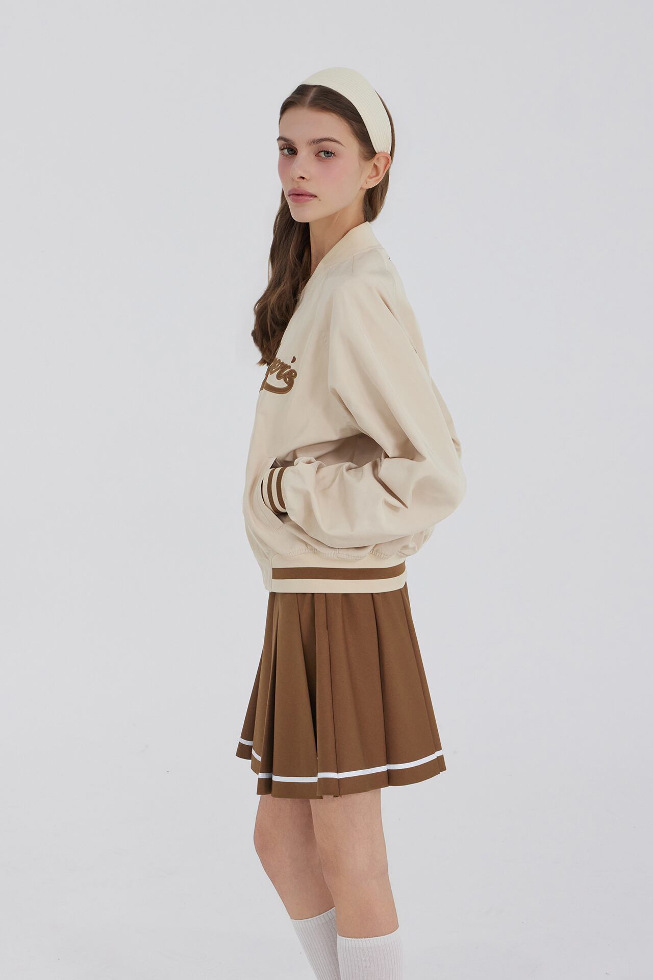 -クラシックなバシティジャケットデザインでカジュアルなムードを演出