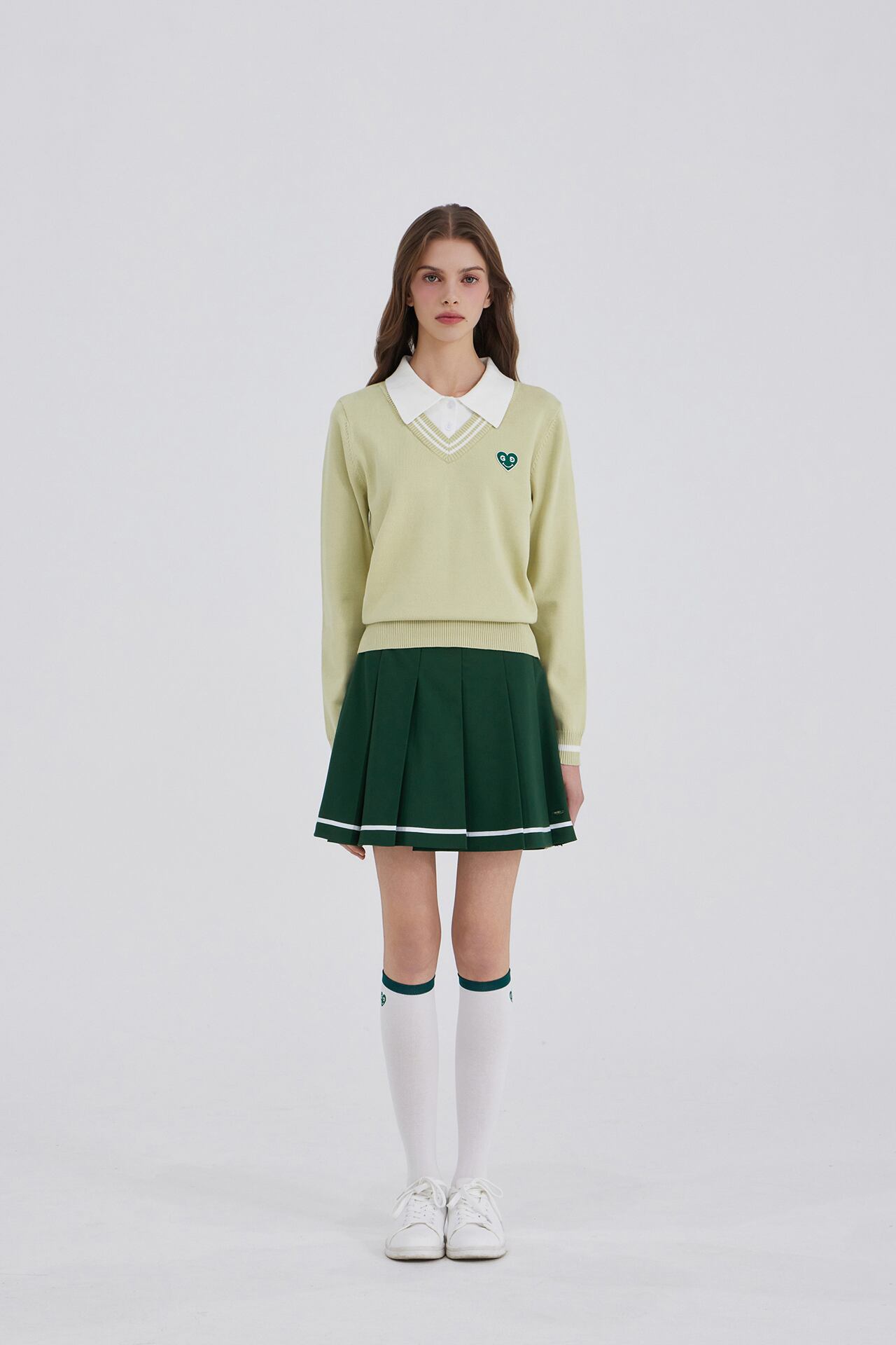 GOXO ゴーエックスオー メタルロゴライン プリーツスカート グリーン