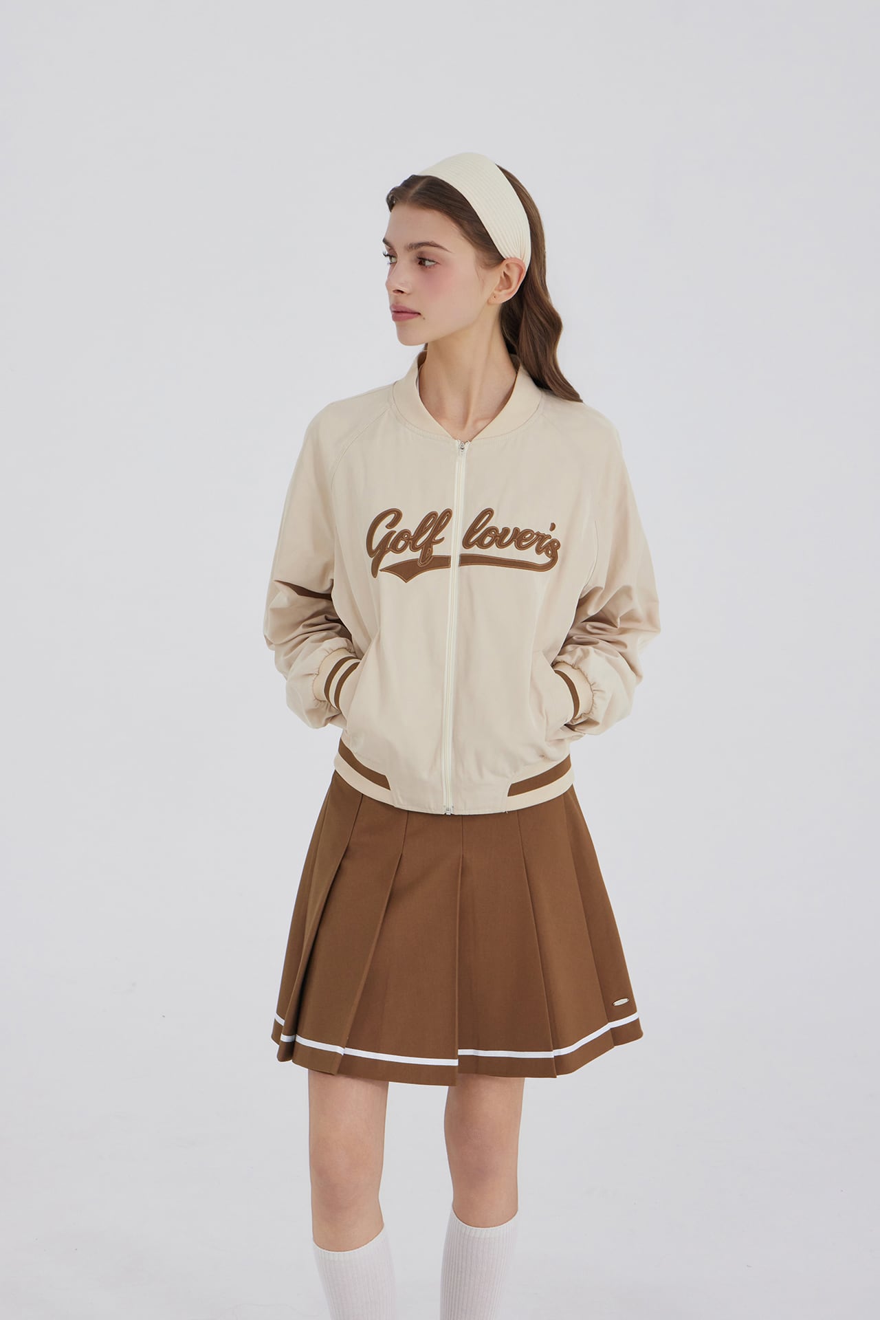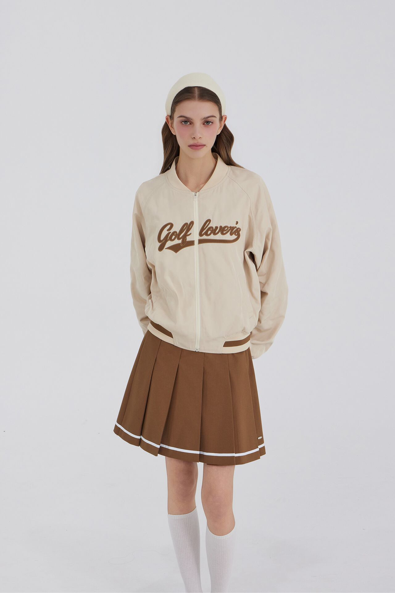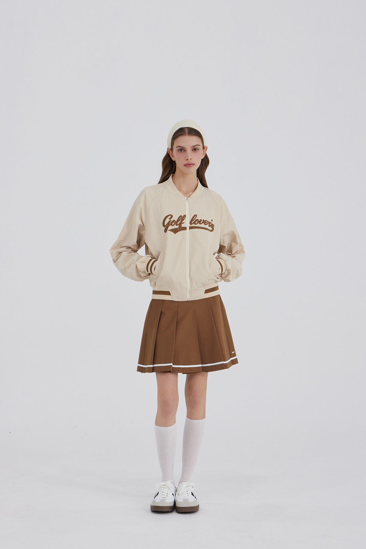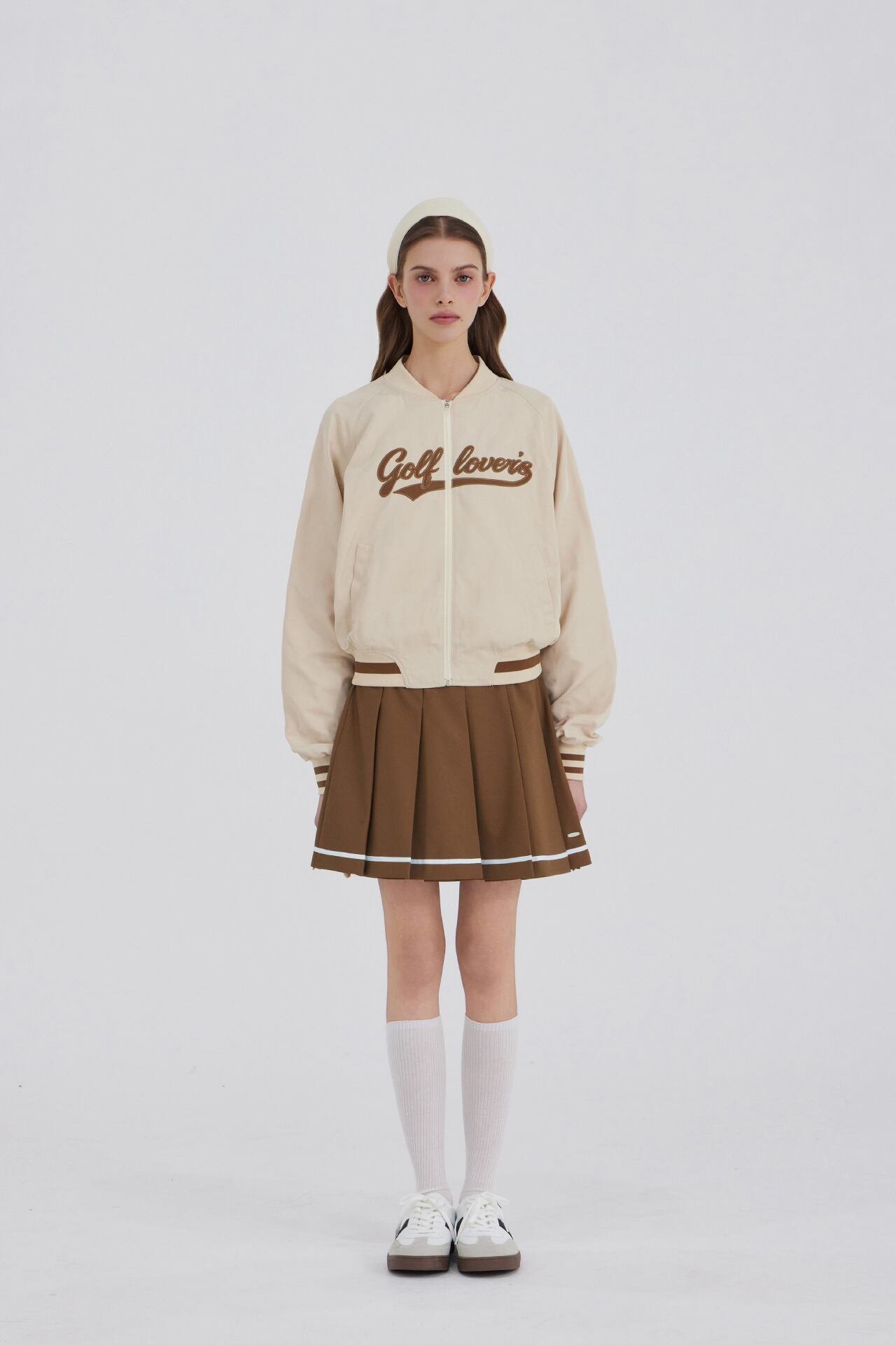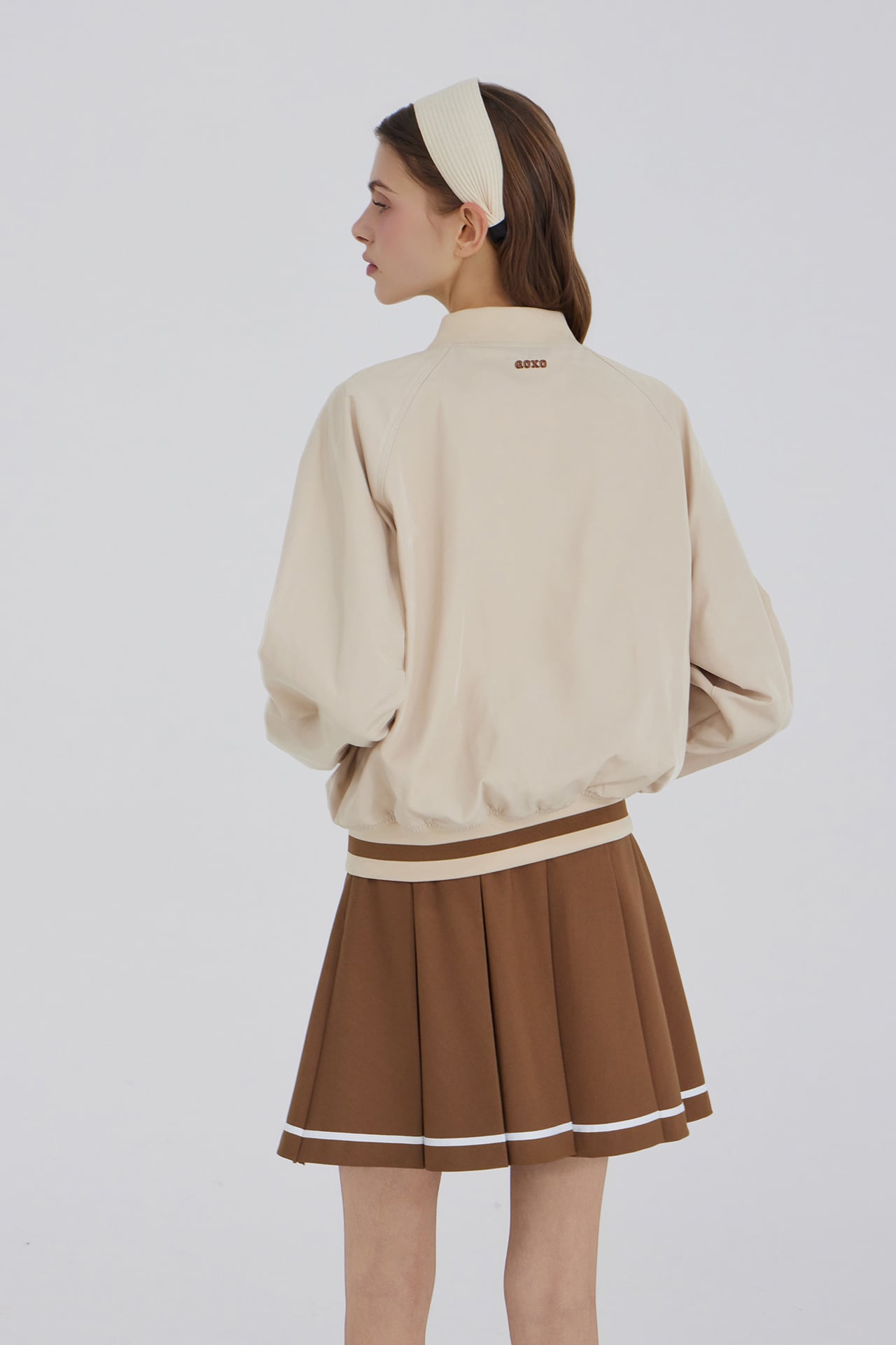 GOXO ゴーエックスオー メタルロゴライン プリーツスカート ブラウン