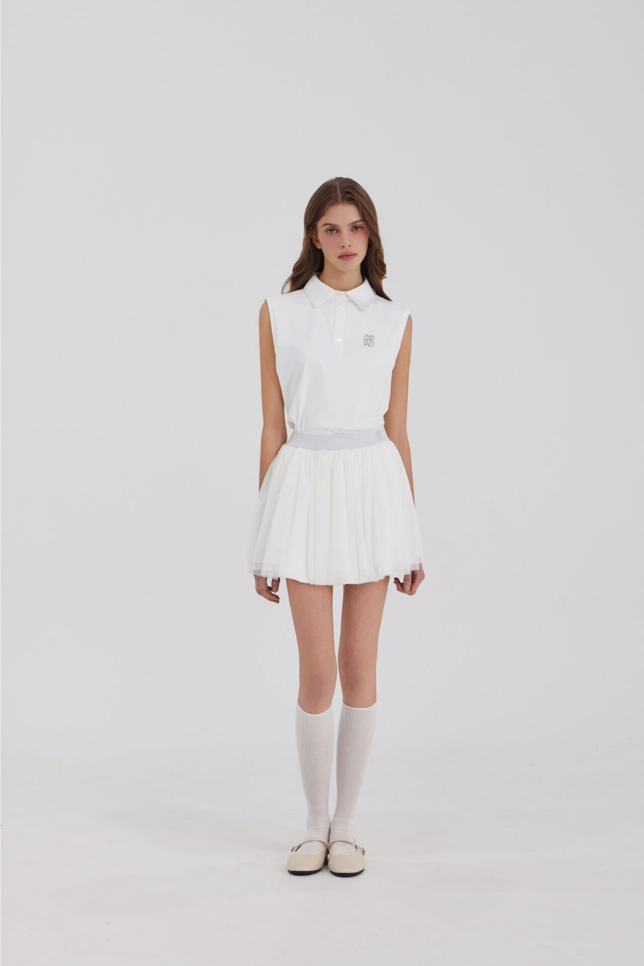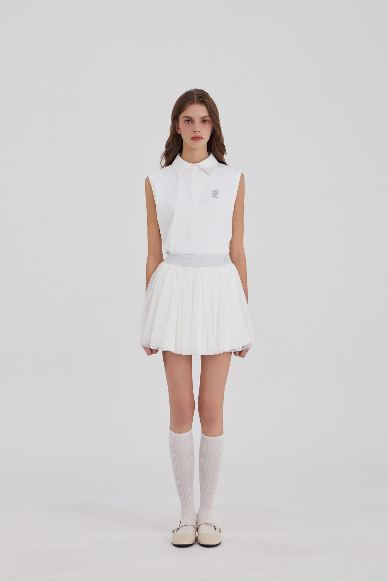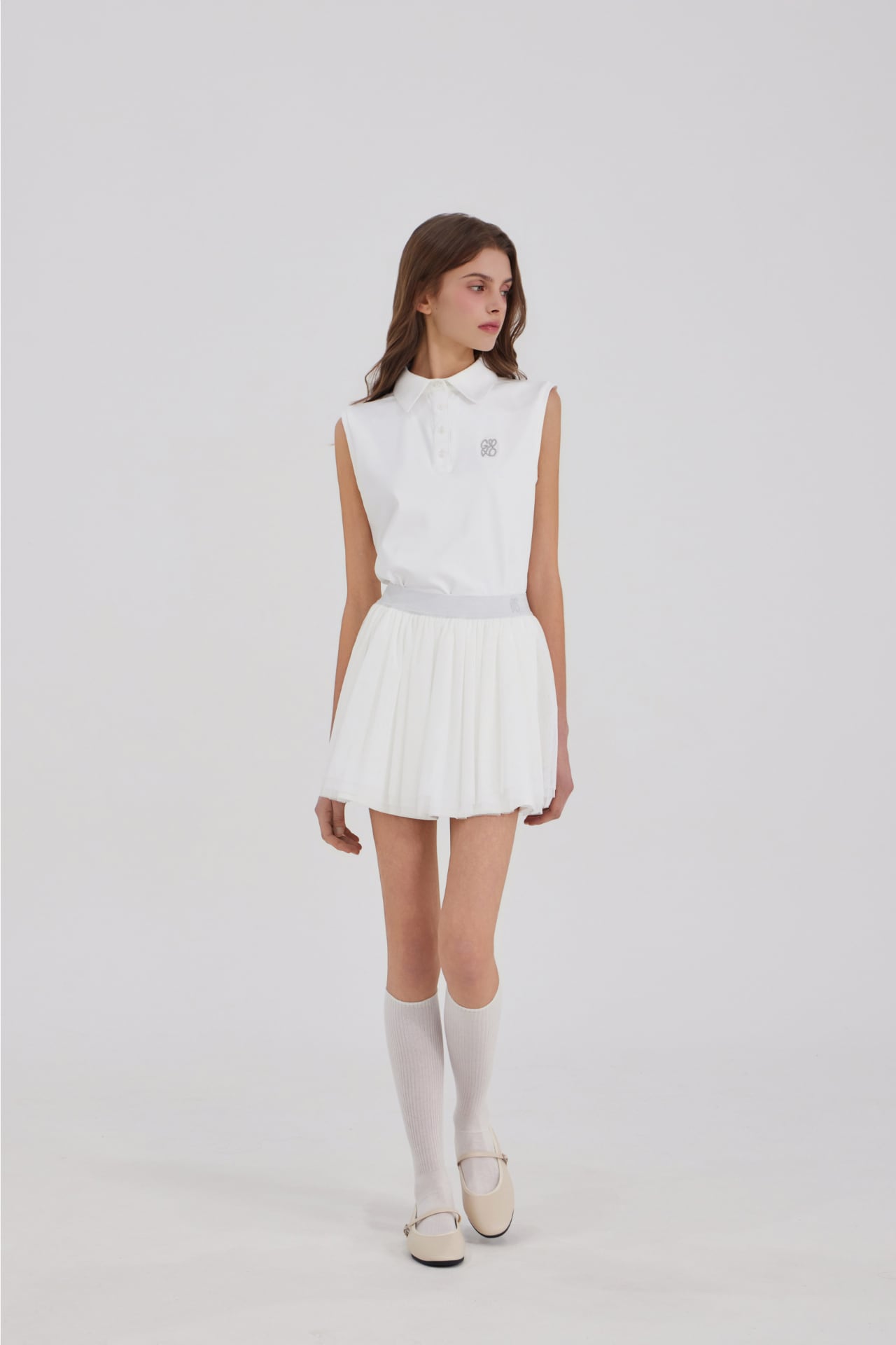 GOXO ゴーエックスオー クラシックロゴ バンディング シフォンスカート ホワイト