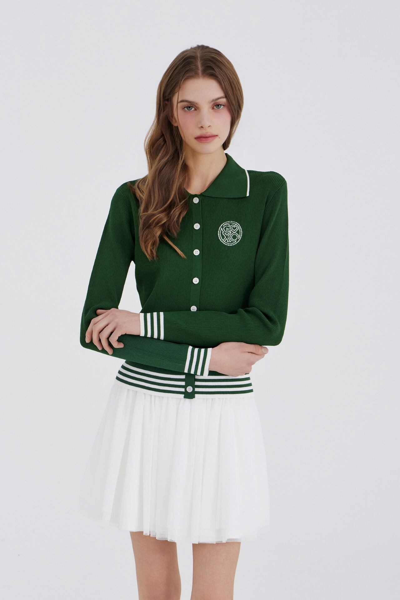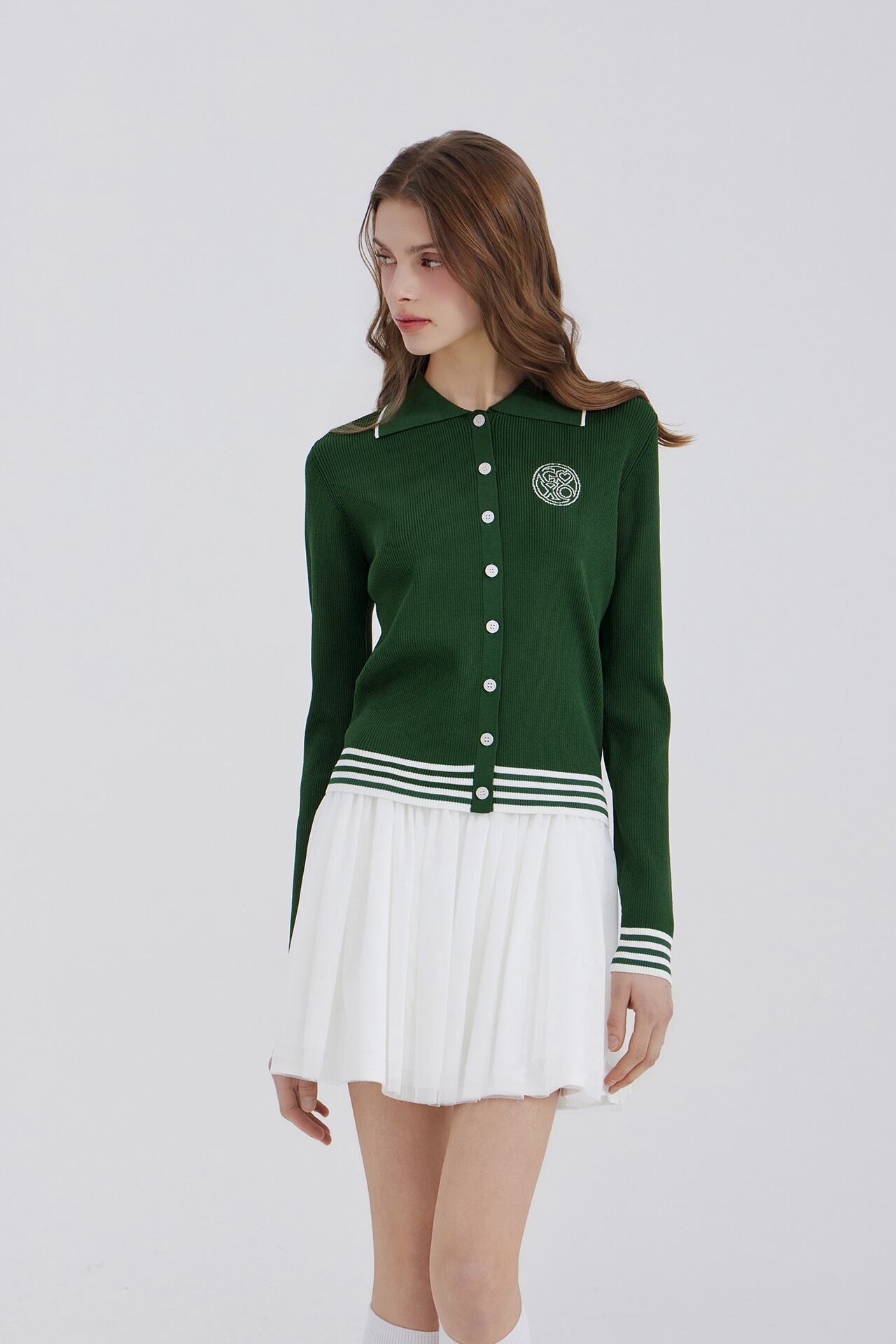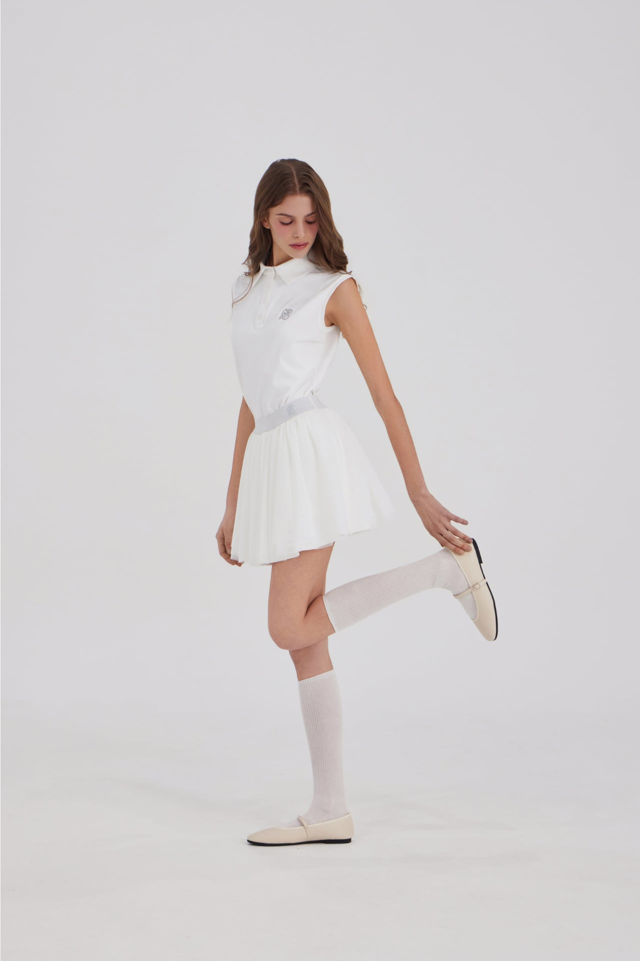 GOXO ゴーエックスオー クラシックロゴ バンディング シフォンスカート ホワイト