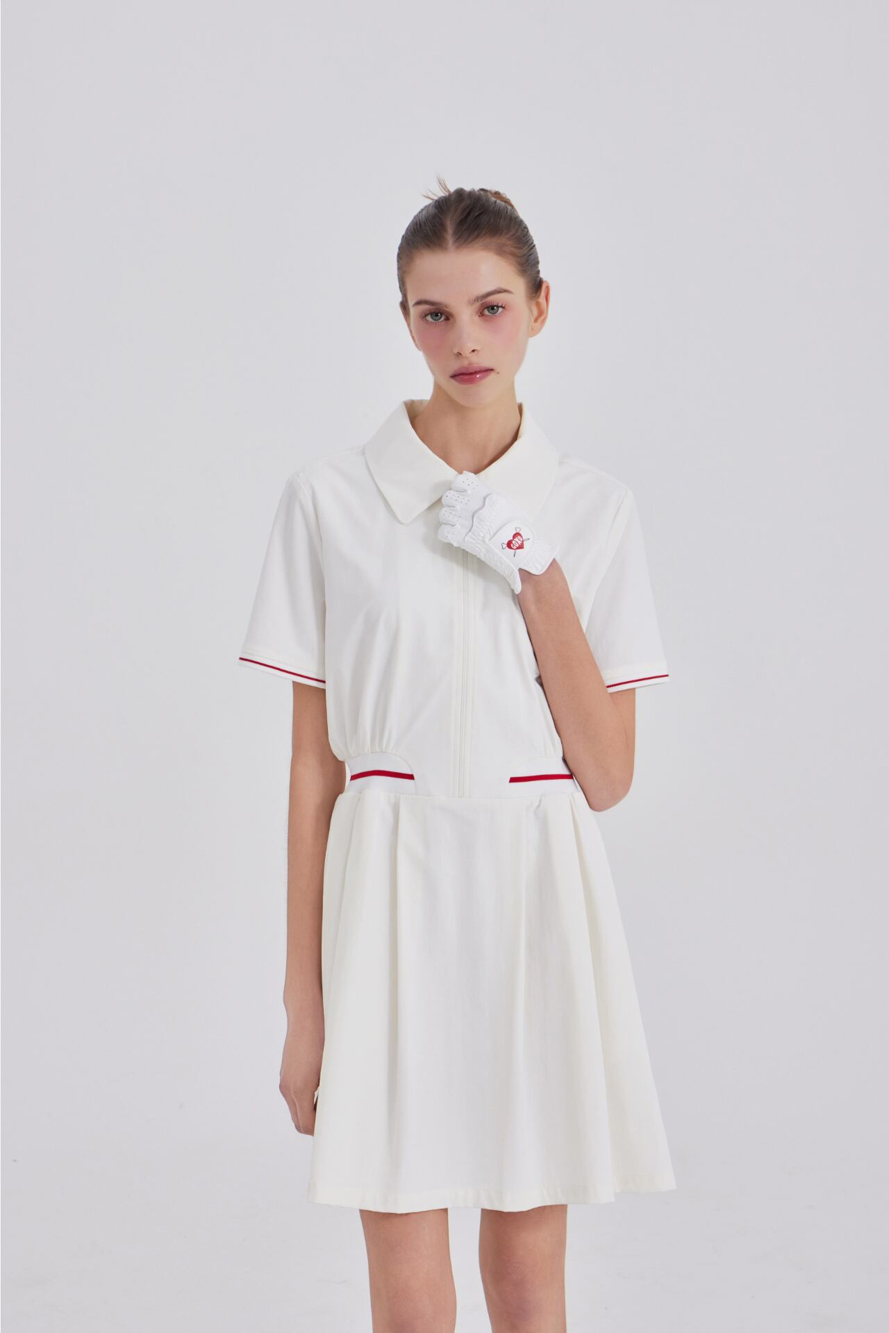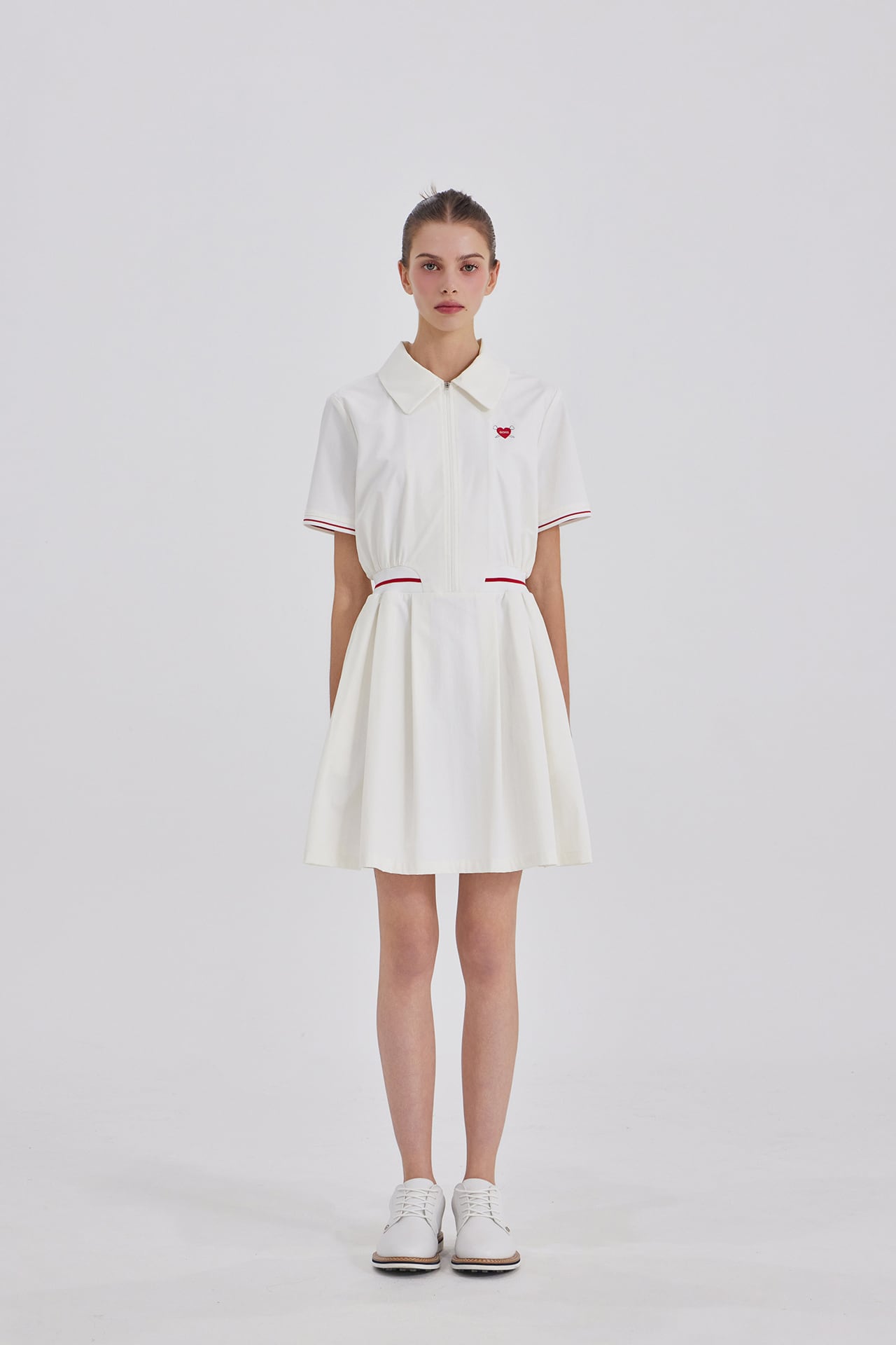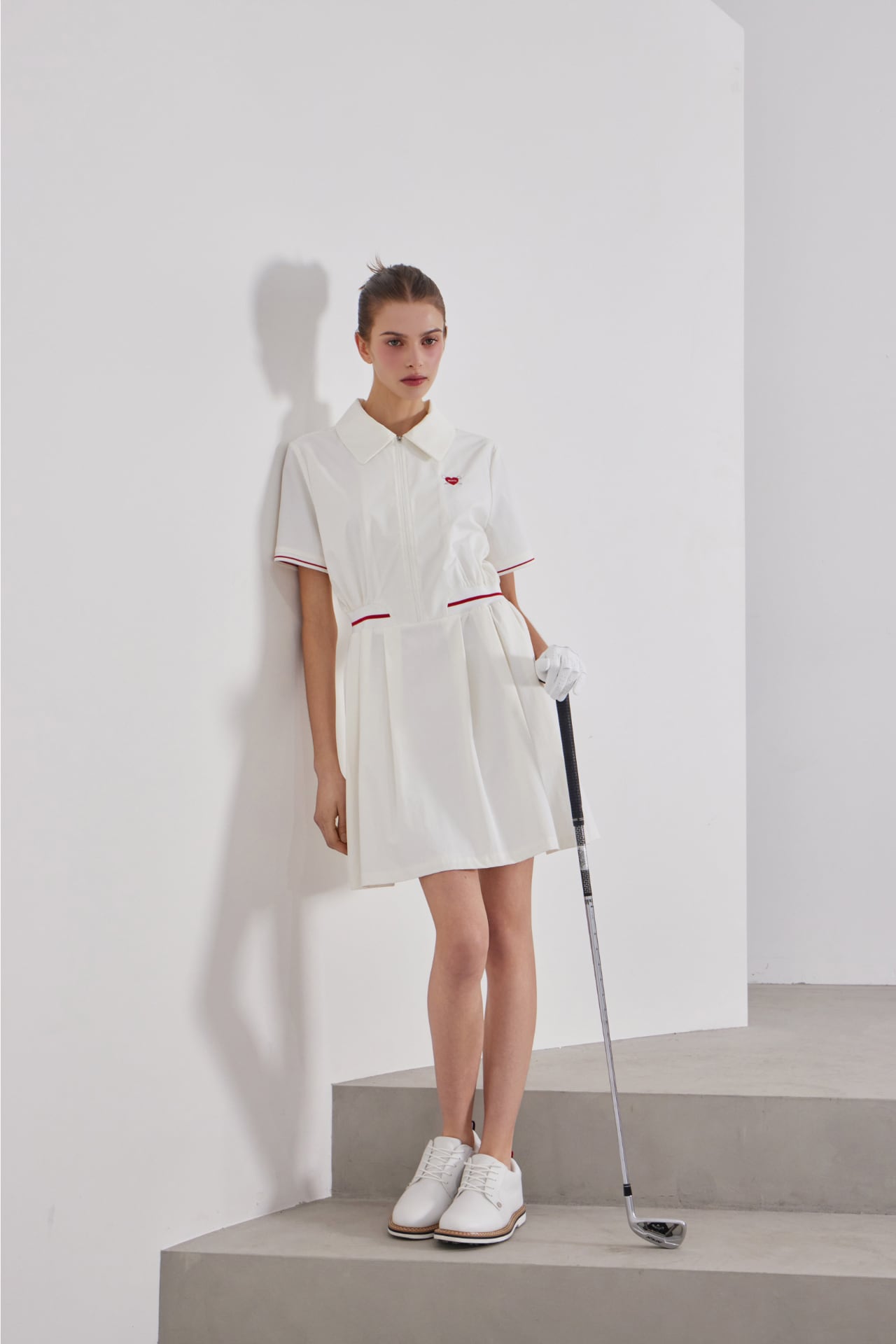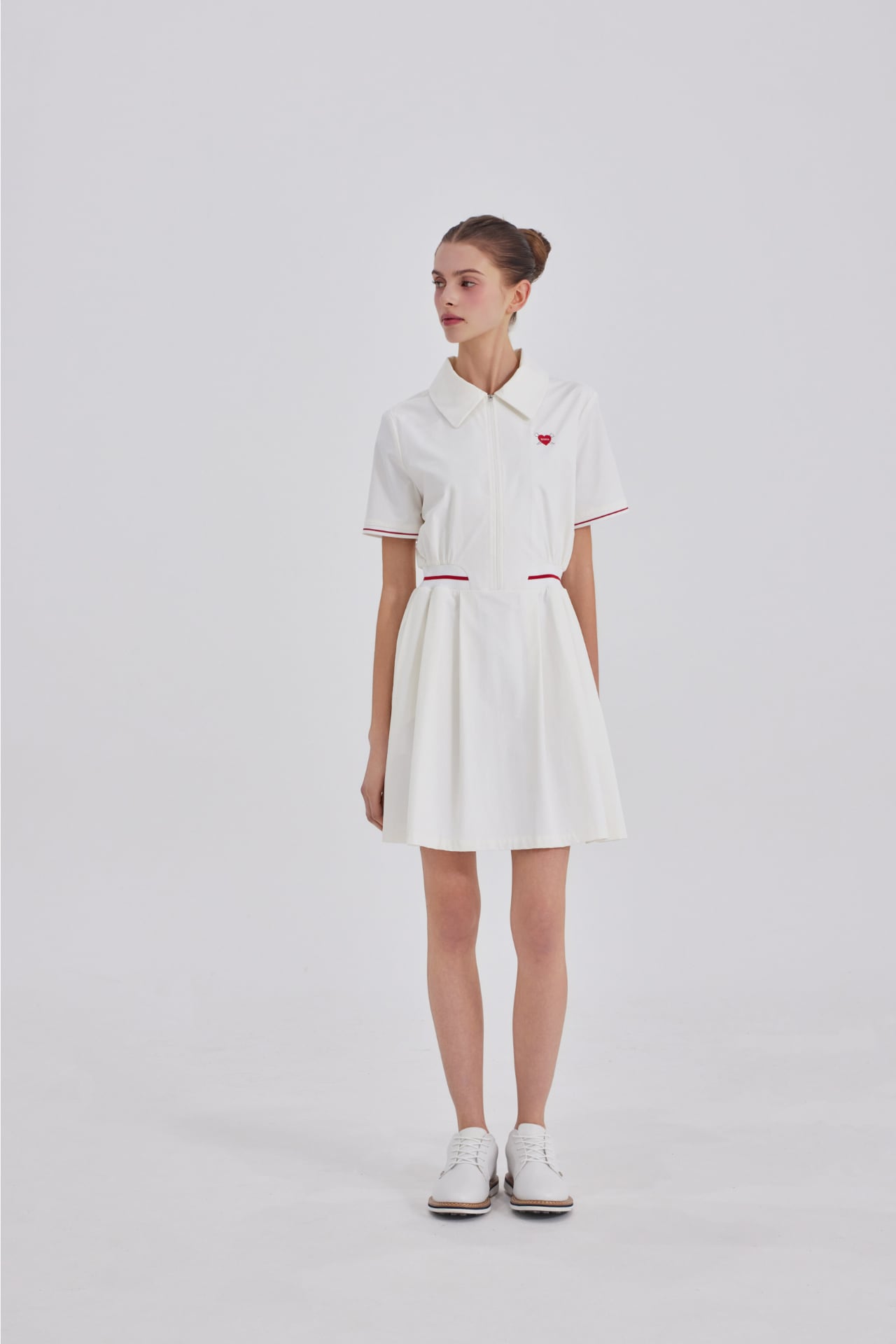 整ったシルエットが際立つ襟のハーフジップアップワンピースです。