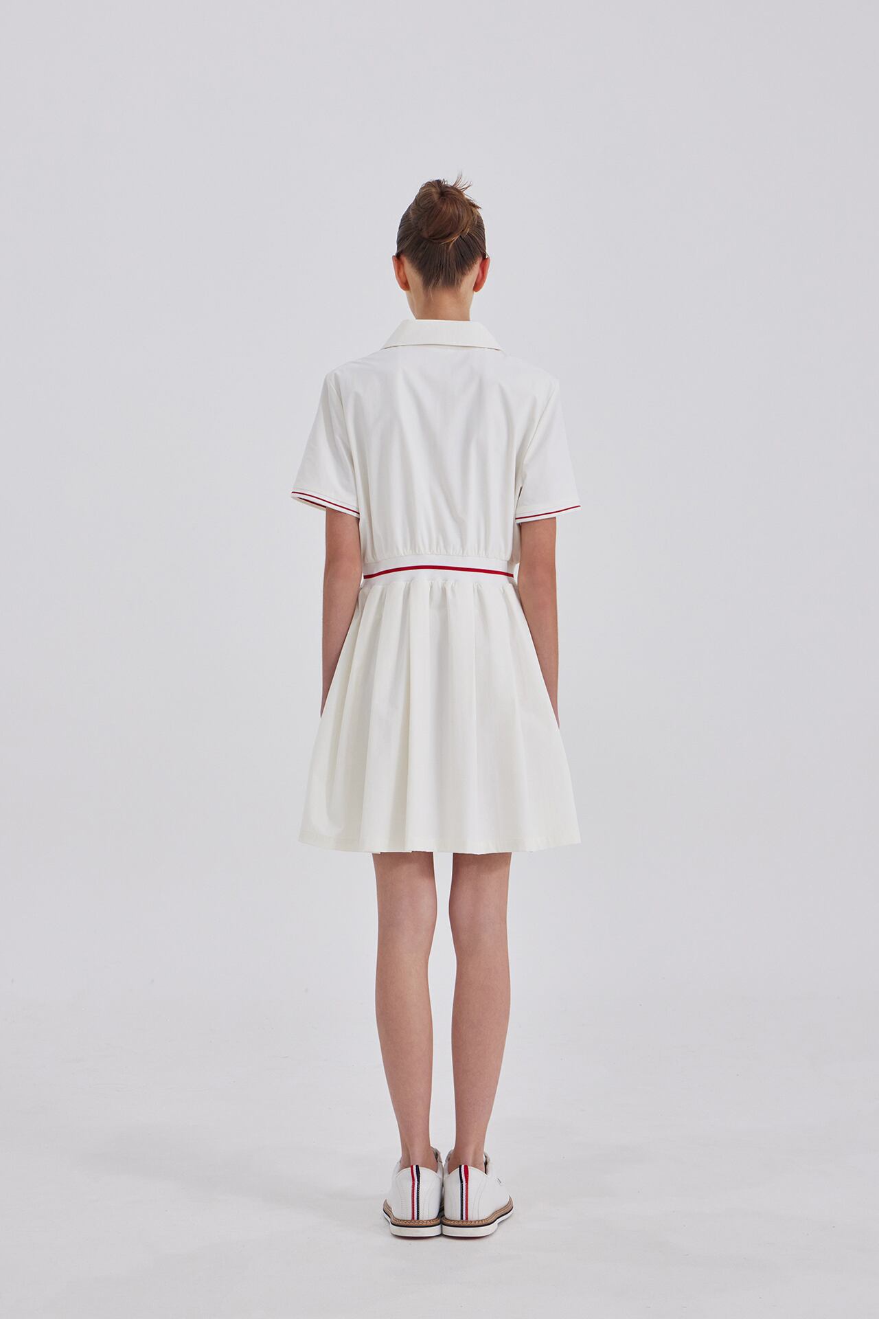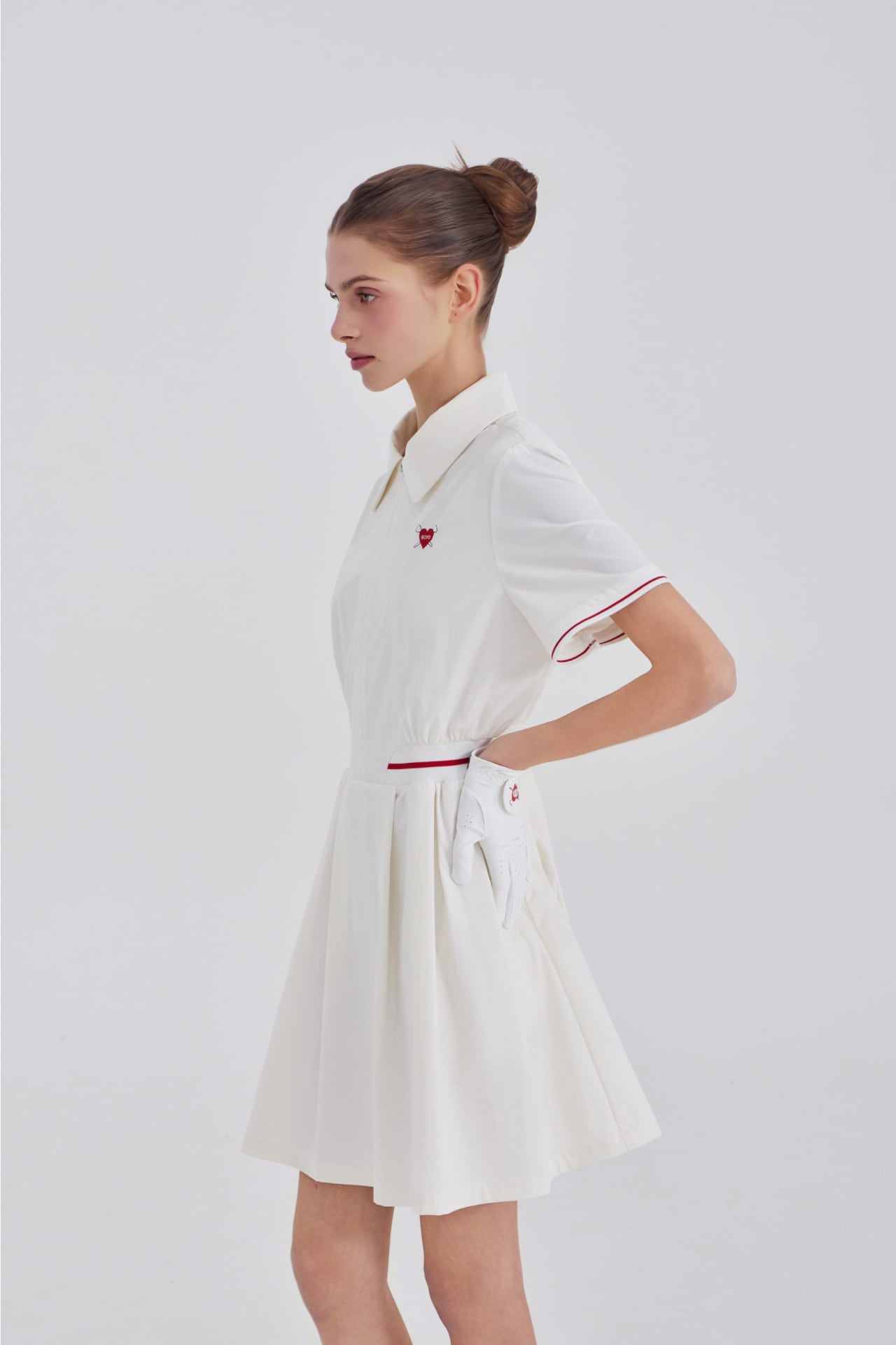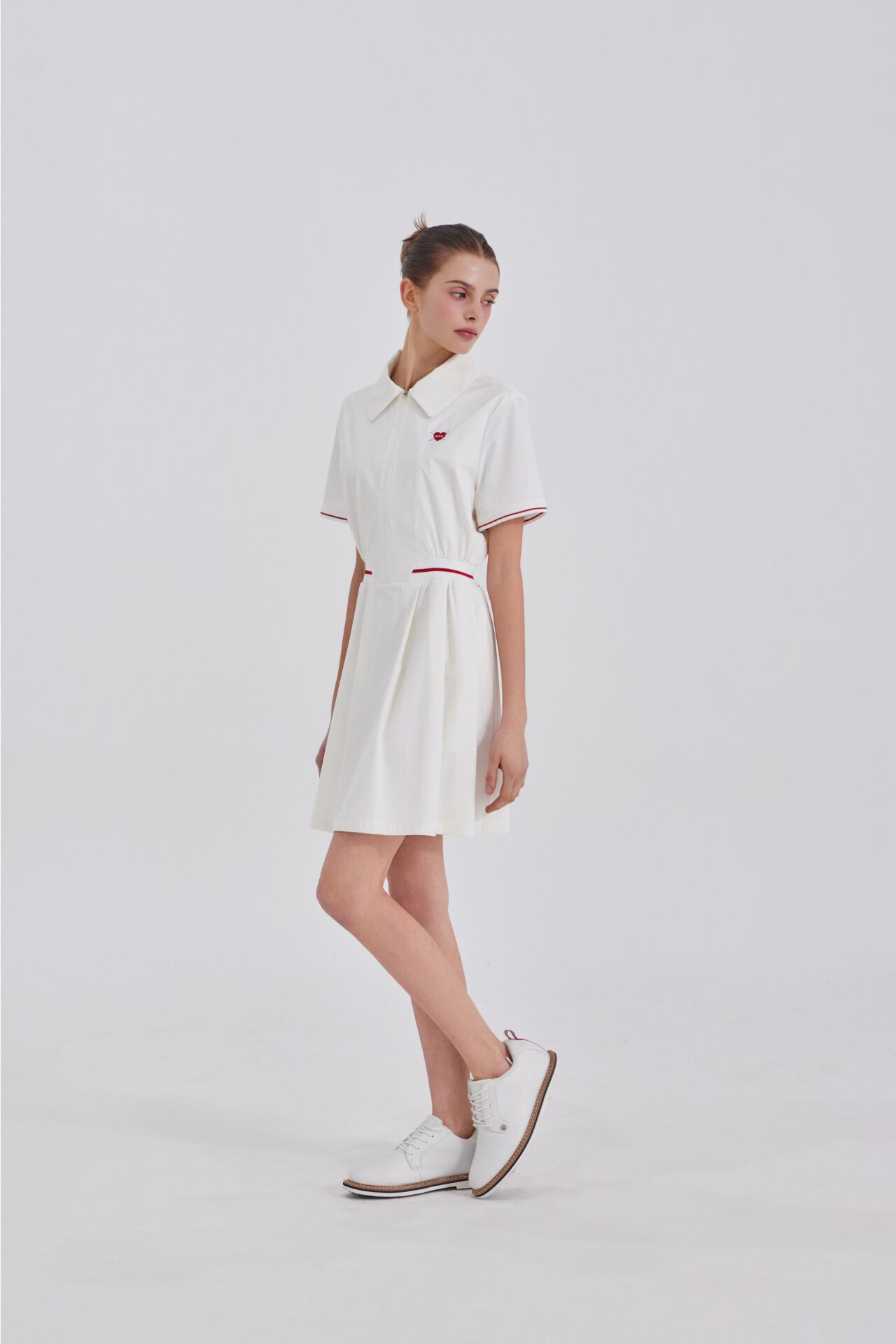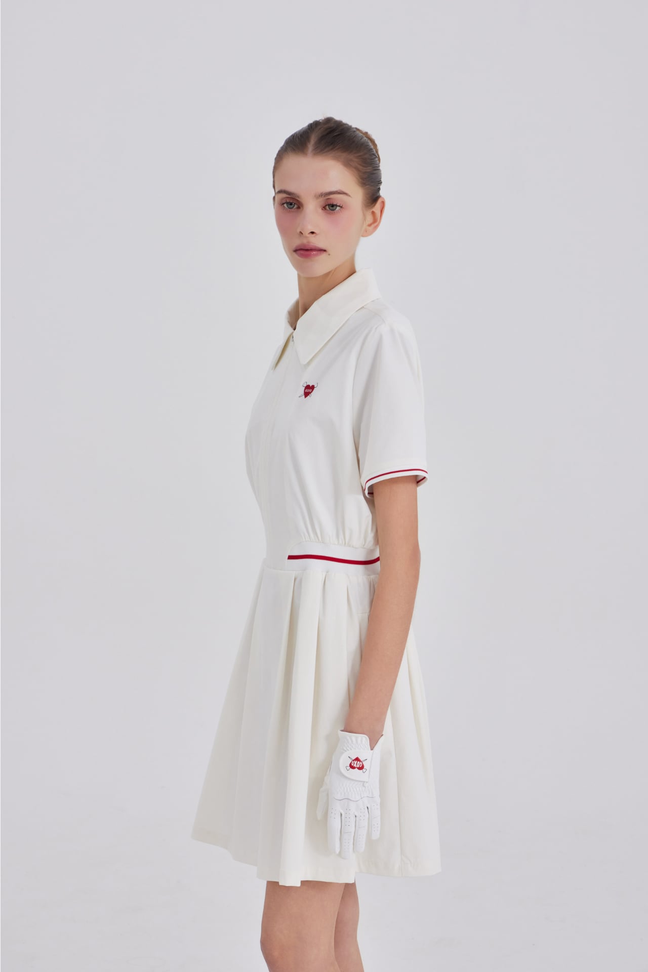 整ったシルエットが際立つ襟のハーフジップアップワンピースです。